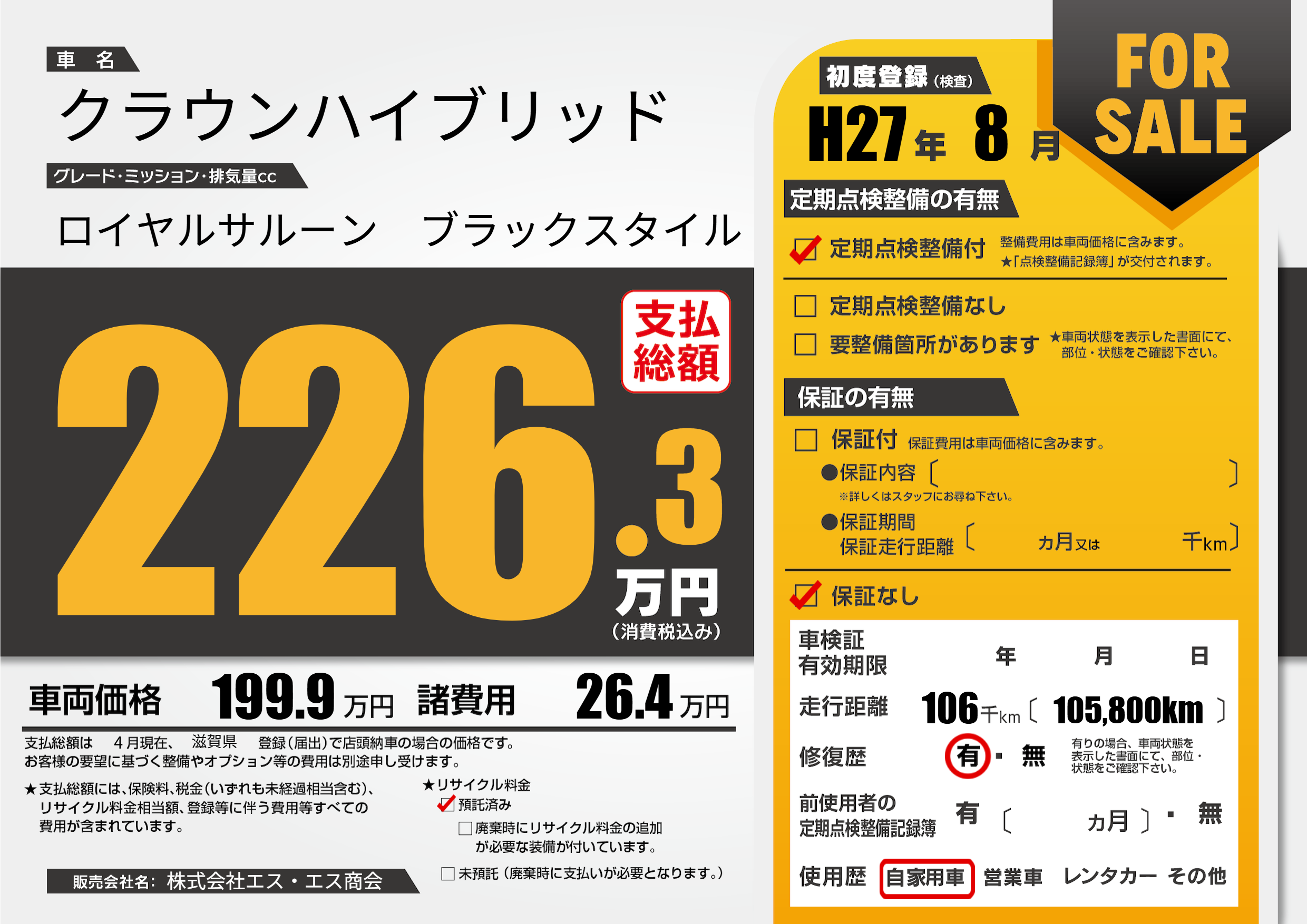| 車名 | クラウンハイブリッド | グレード ミッション 排気量 |