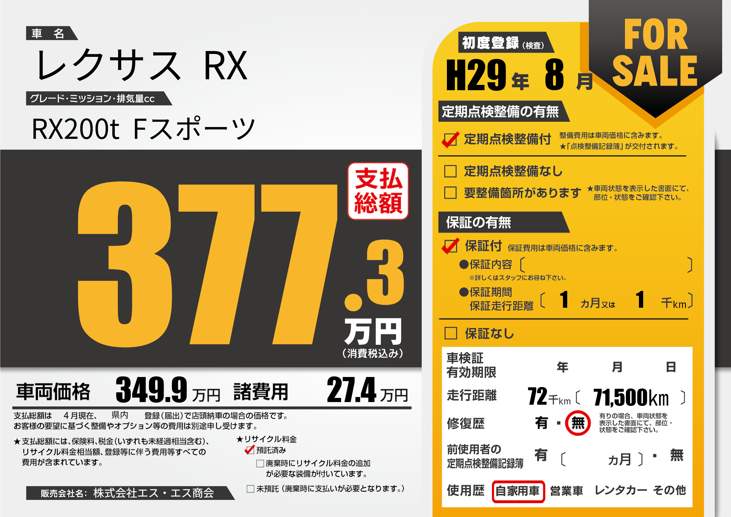 | 初年度登録 | H29年8月 | ||