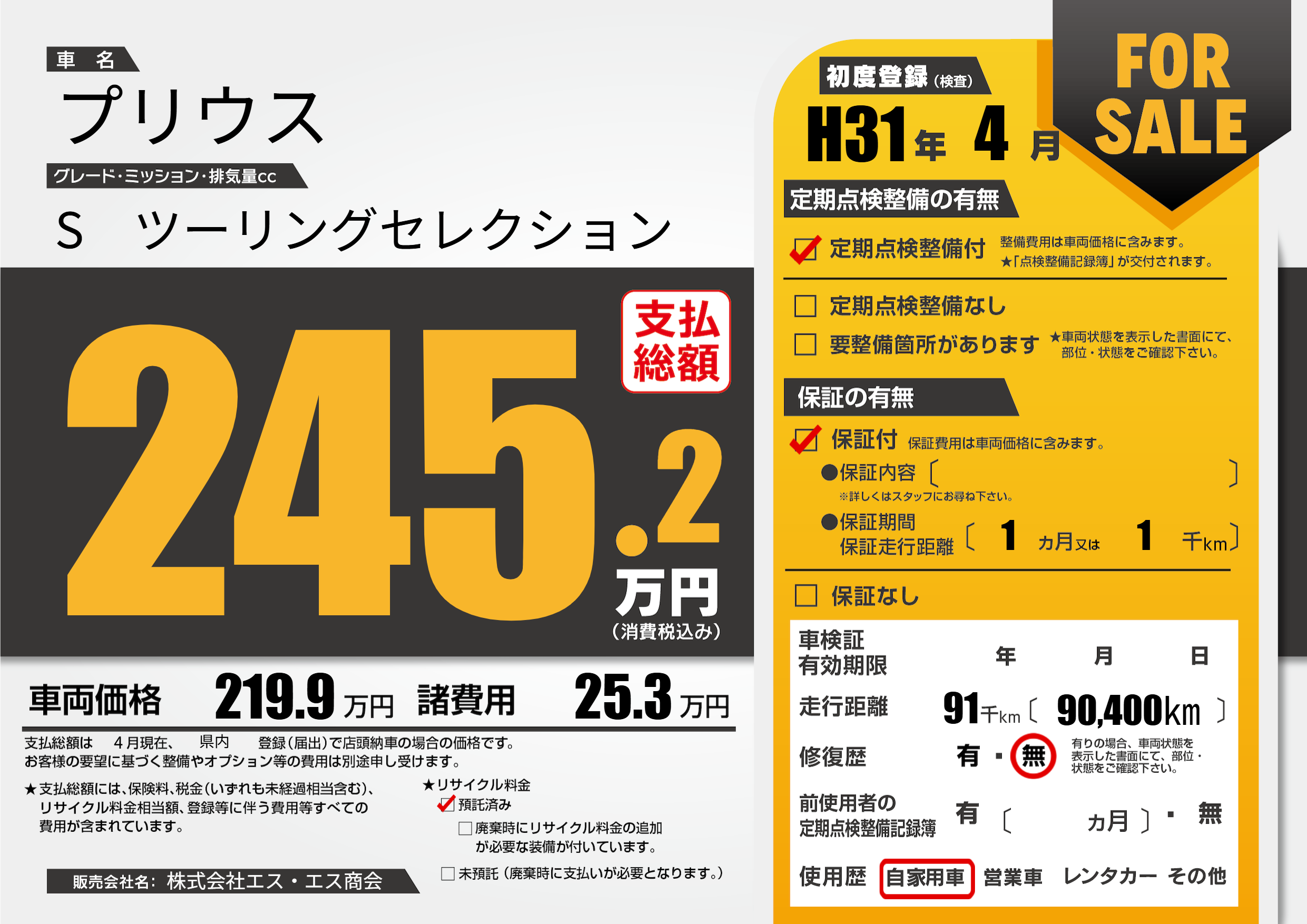 | 車名 | プリウス | グレード ミッション 排気量 |