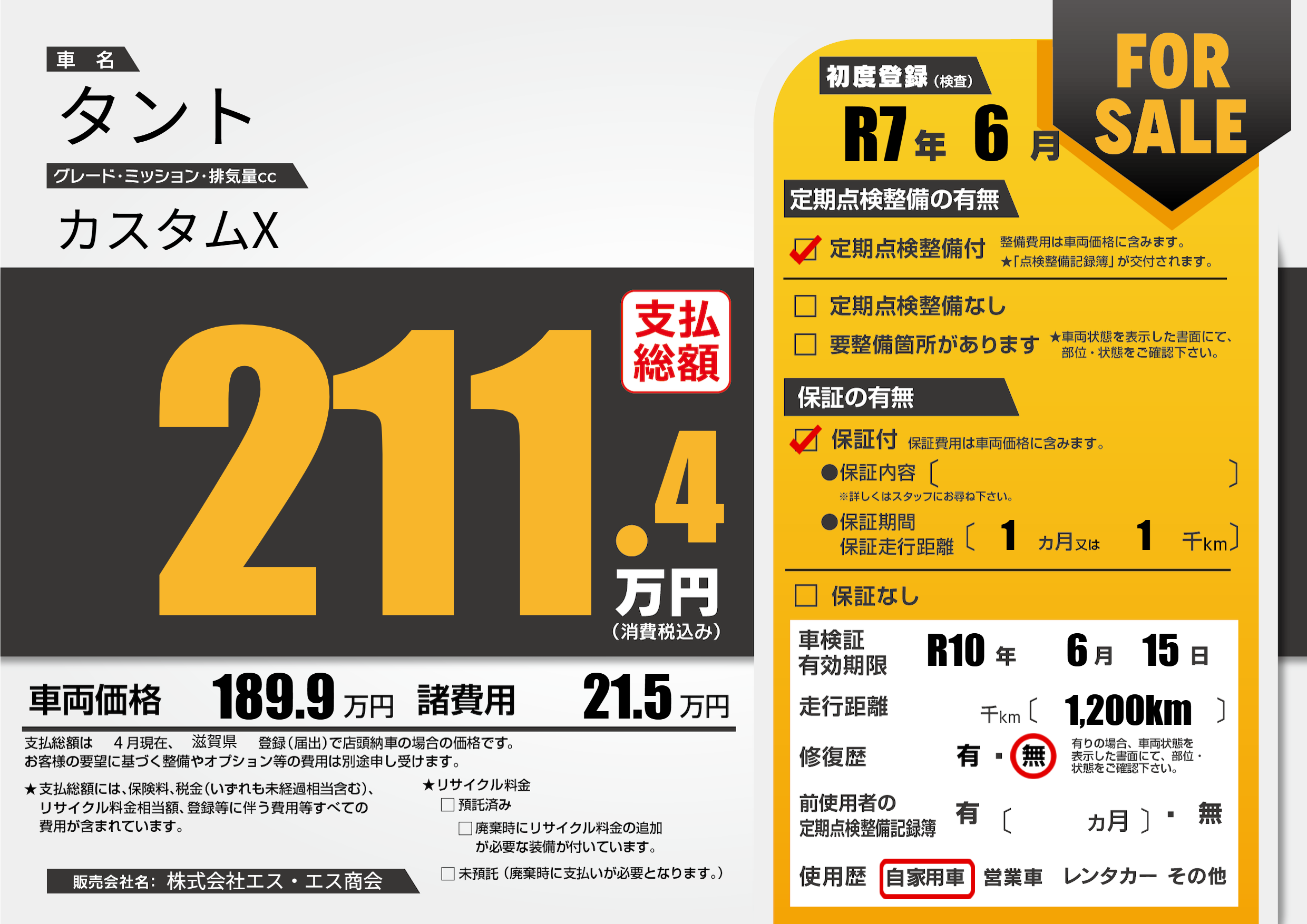 なし | 車検制限 | R10年6月15月 |