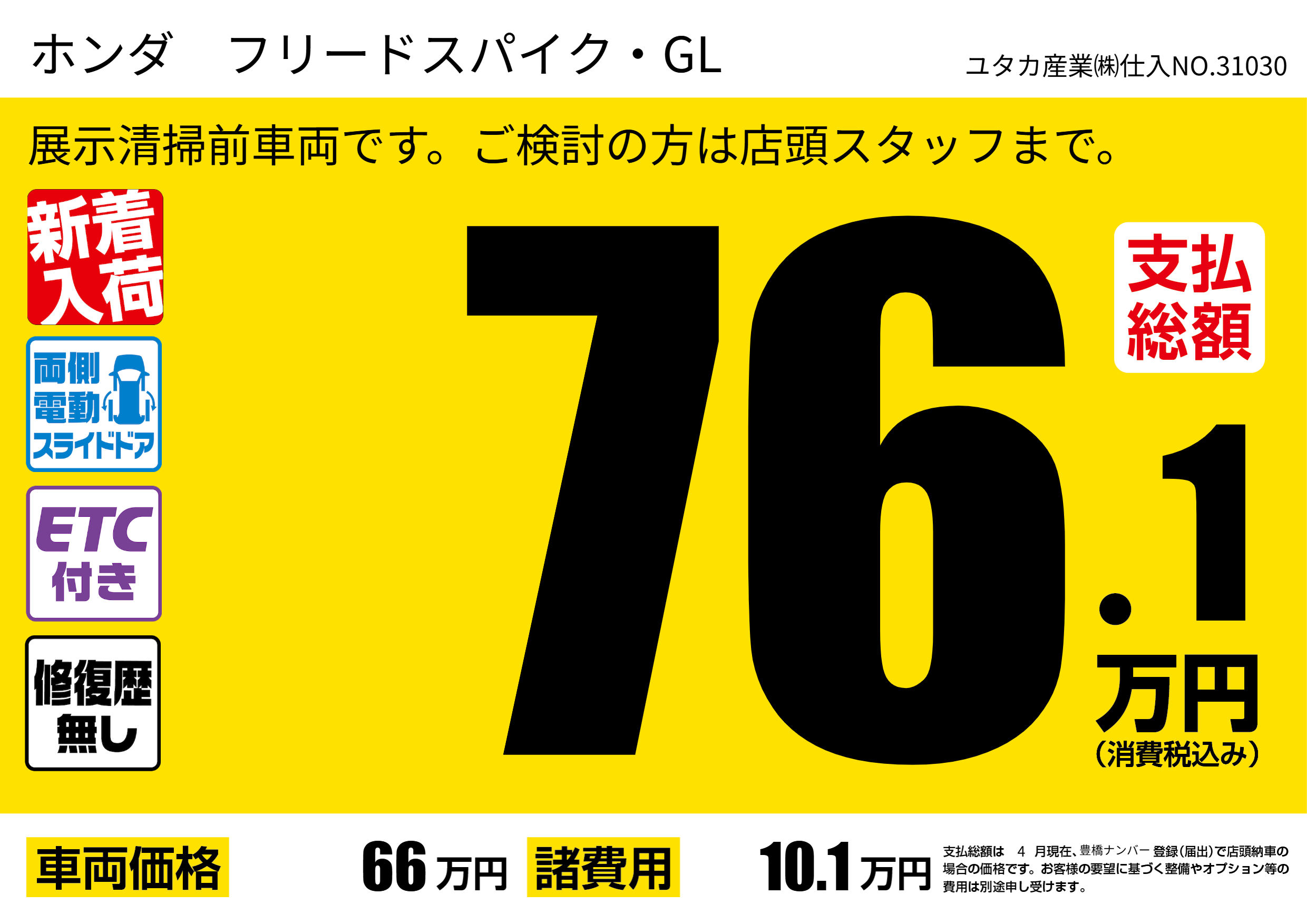 | 車名 | ホンダ フリードスパイク・GL | グレード ミッション 排気量 |