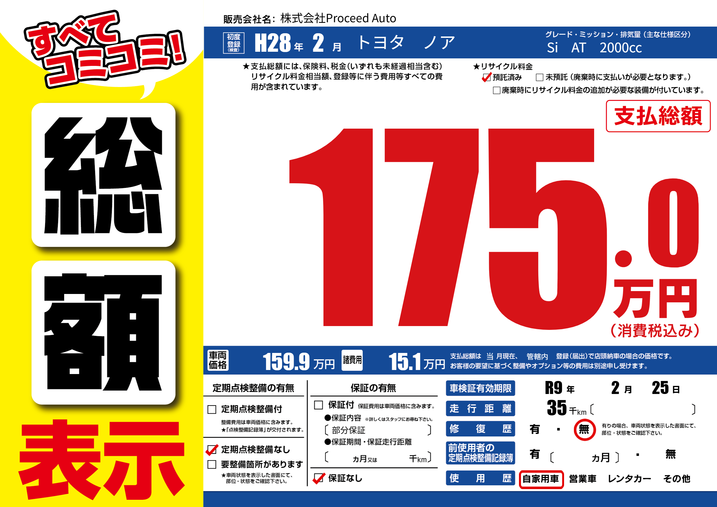 なし | 車検制限 | R9年2月25月 |