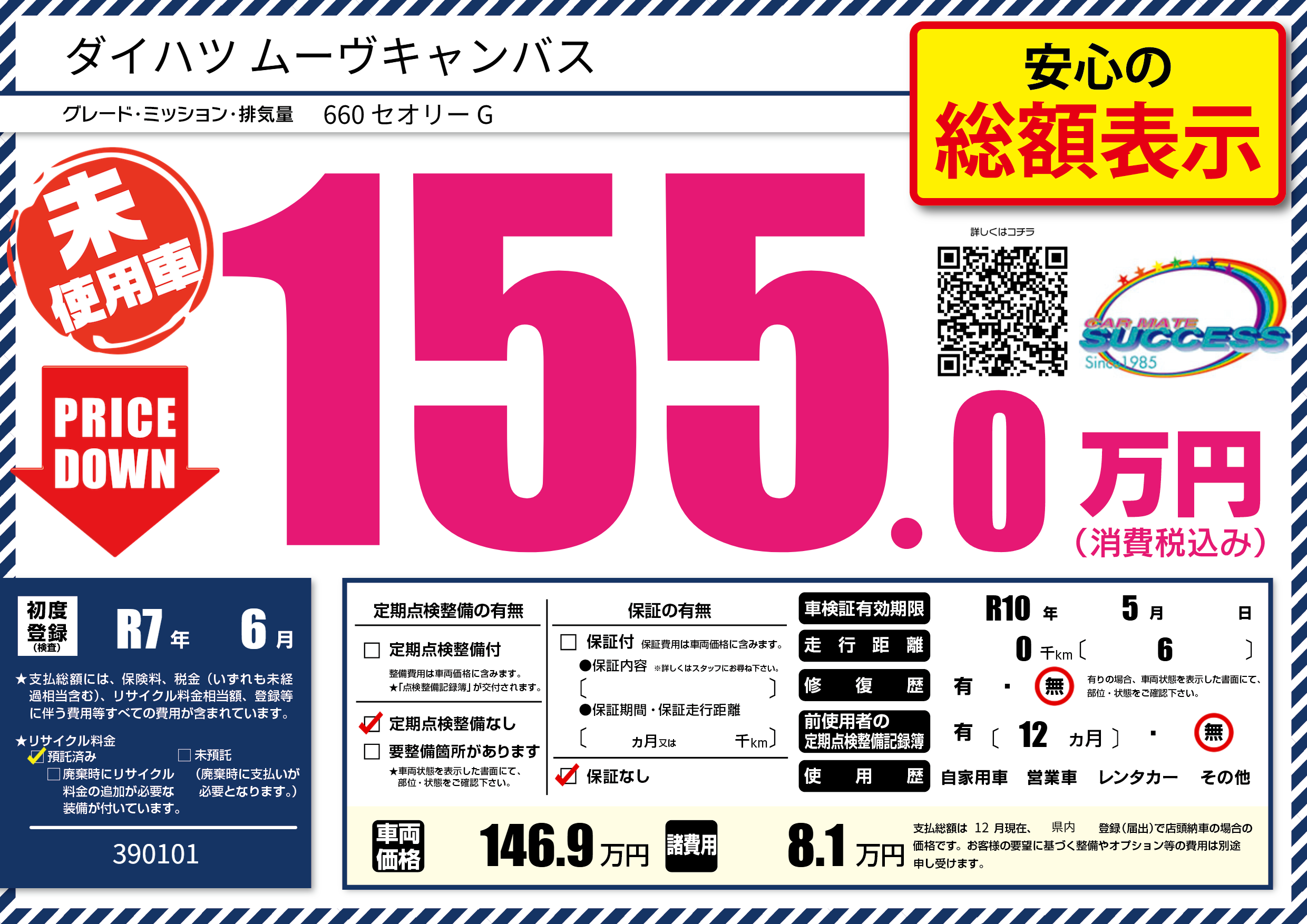 | 走行キロ | - | 初年度登録 | R7年6月 |