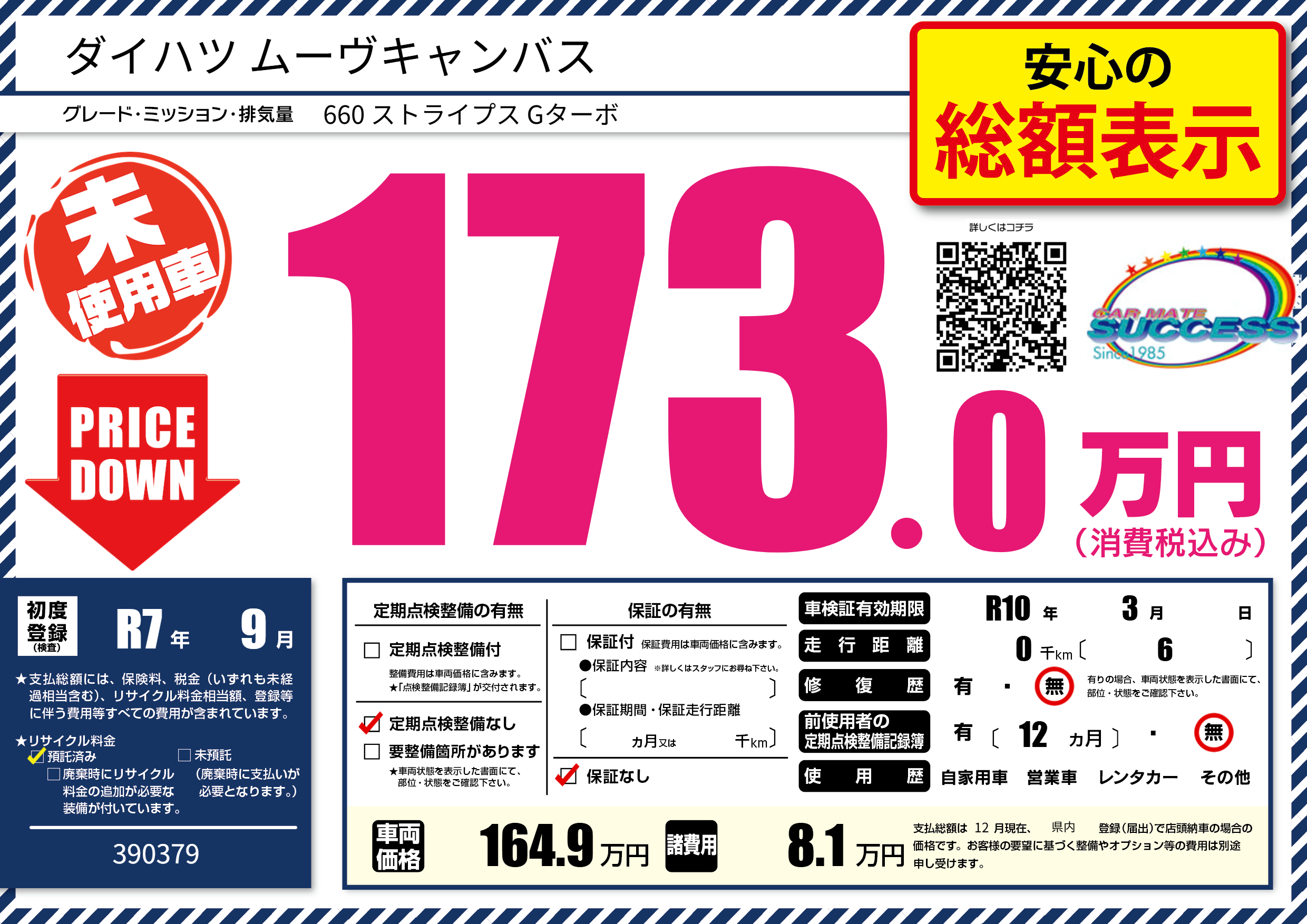 | 走行キロ | - | 初年度登録 | R7年9月 |