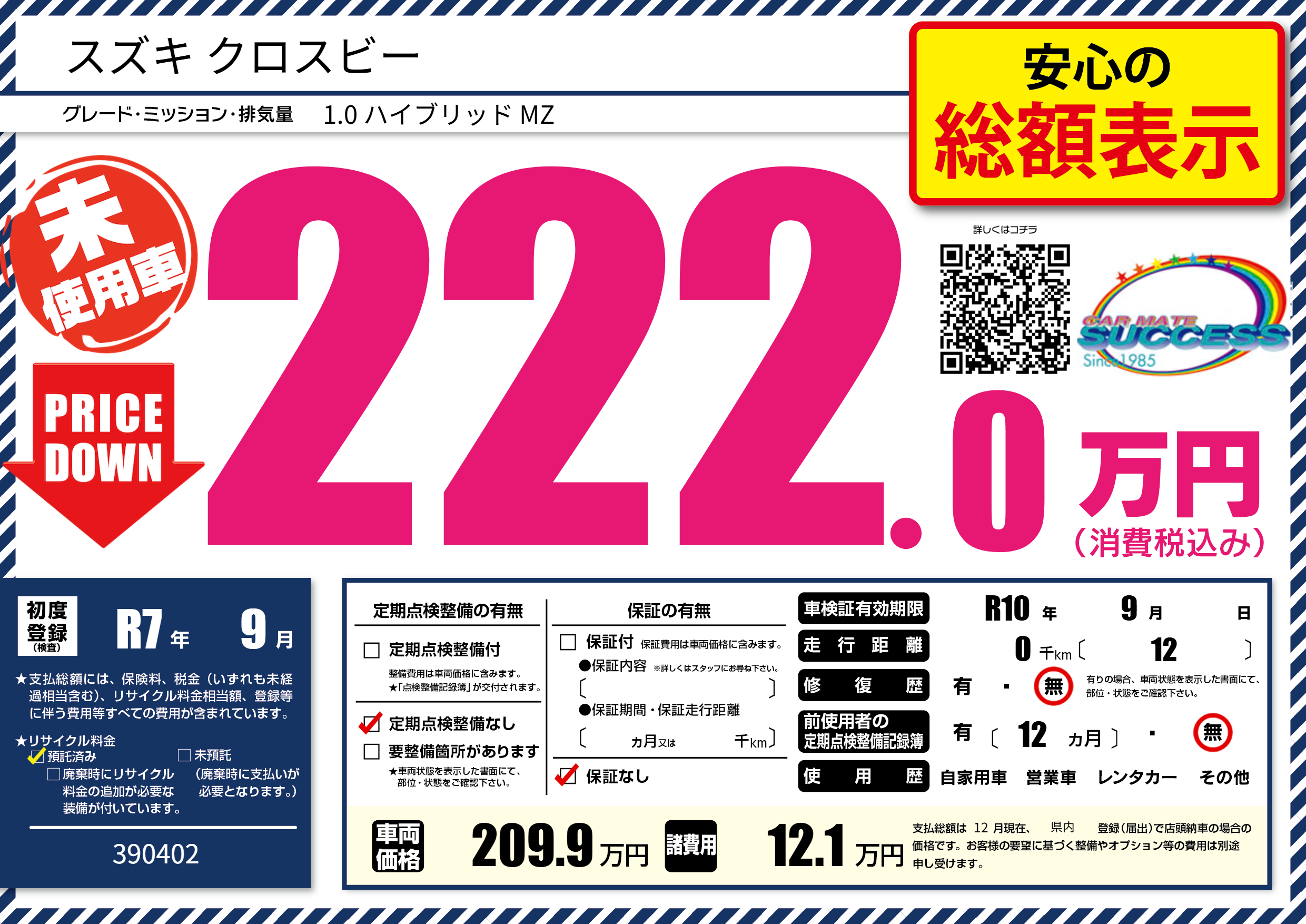 | 車検制限 | R10年 9月 - 日 | ||