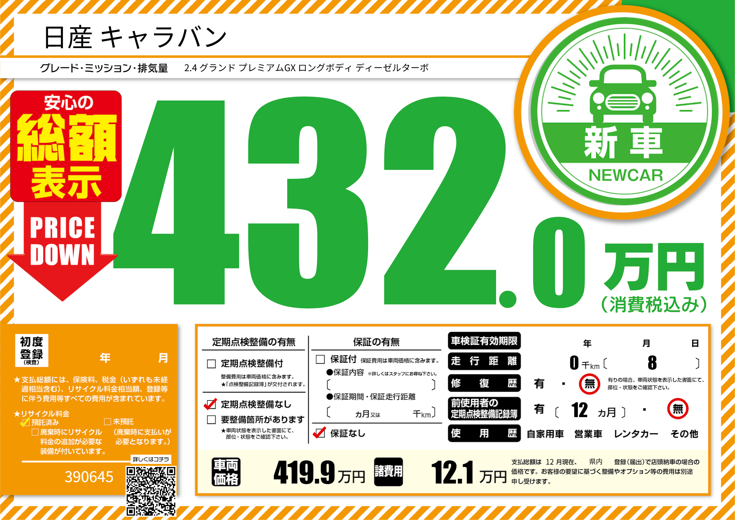 | 車名 | 日産 キャラバン | グレード ミッション 排気量 |