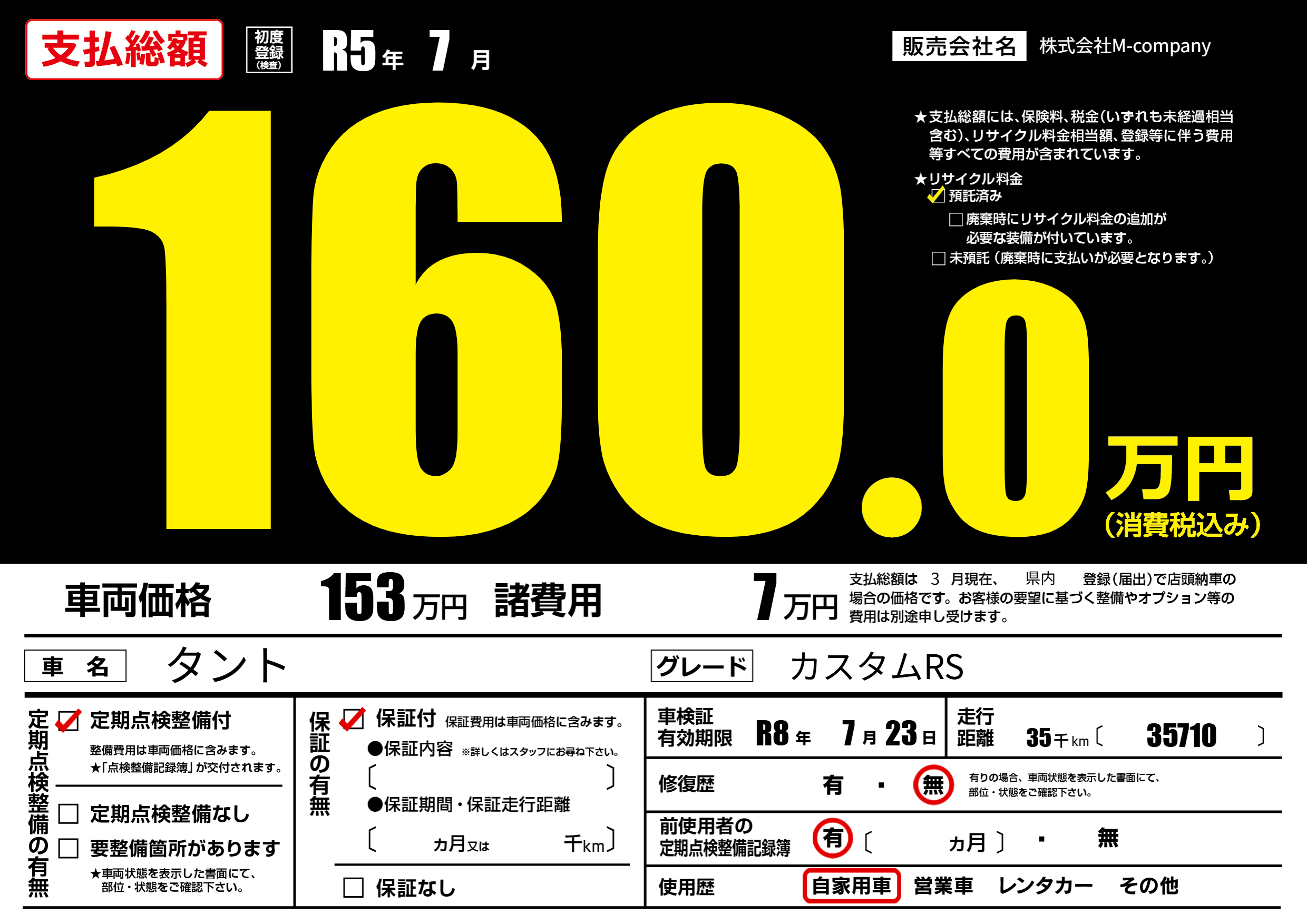 なし | 車検制限 | R8年7月23月 |