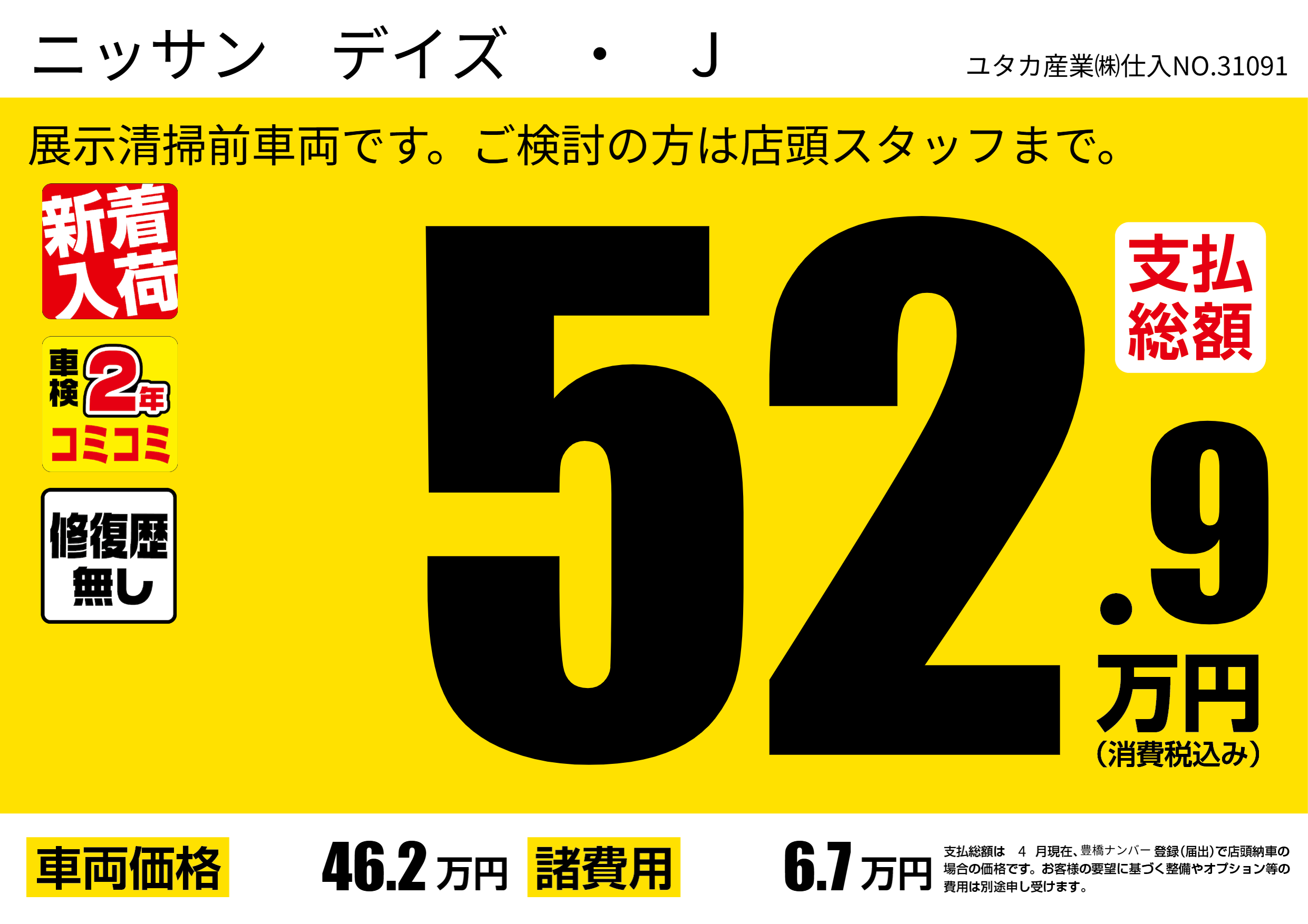 展示清掃前車両です。ご検討の方は店頭スタッフまで。 |