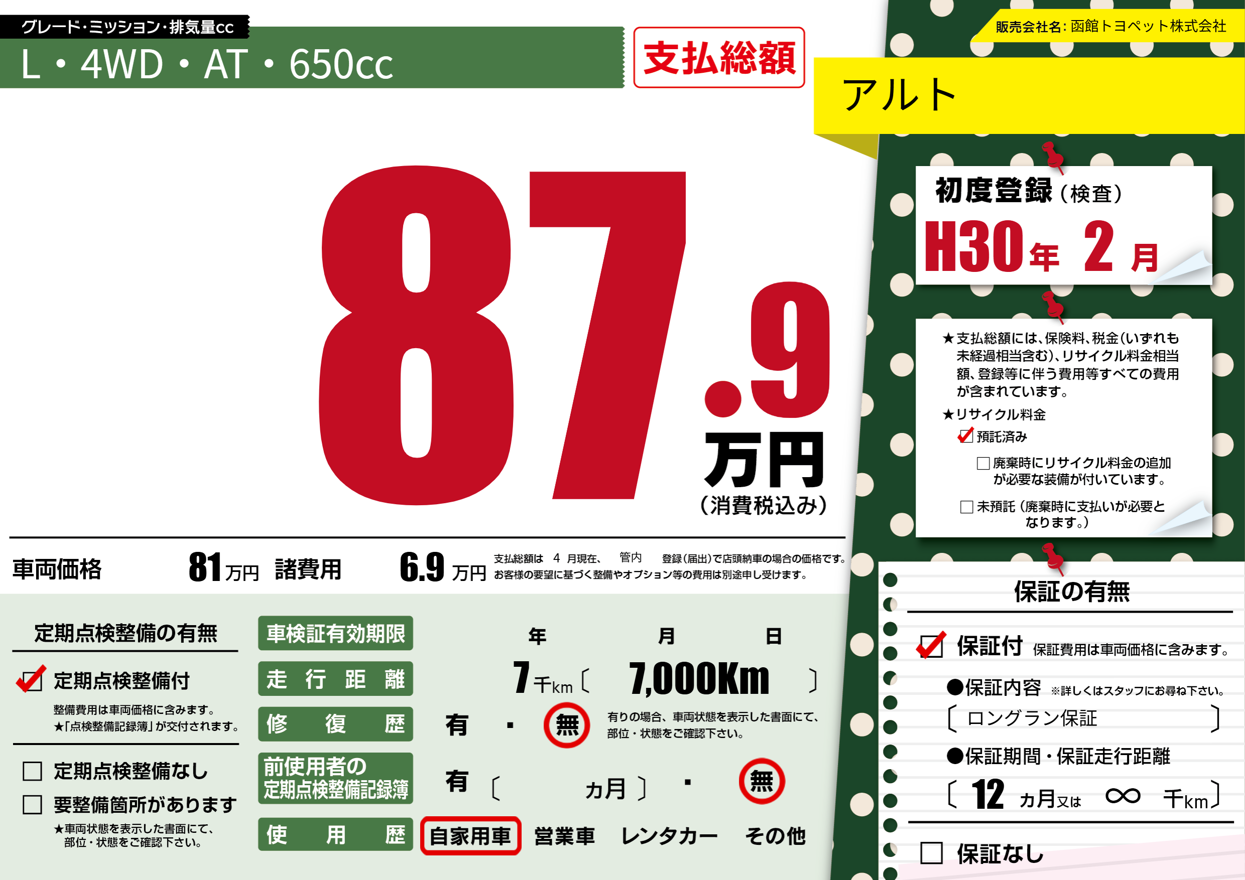 | 定期点検整備 | 定期点検整備あり | ||