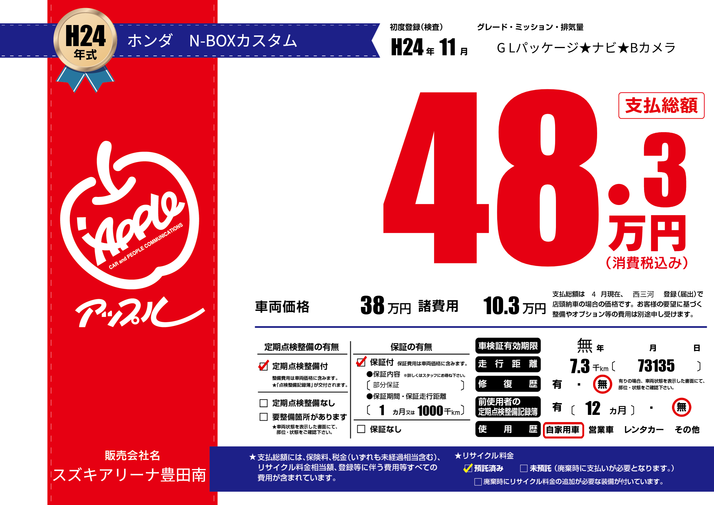 | 車名 | ホンダ N-BOXカスタム | グレード ミッション 排気量 |