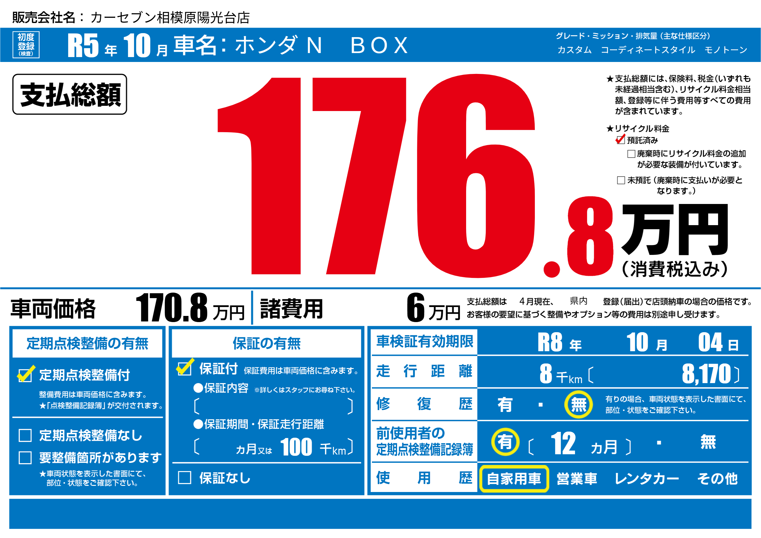 なし | 車検制限 | R8年10月04月 |
