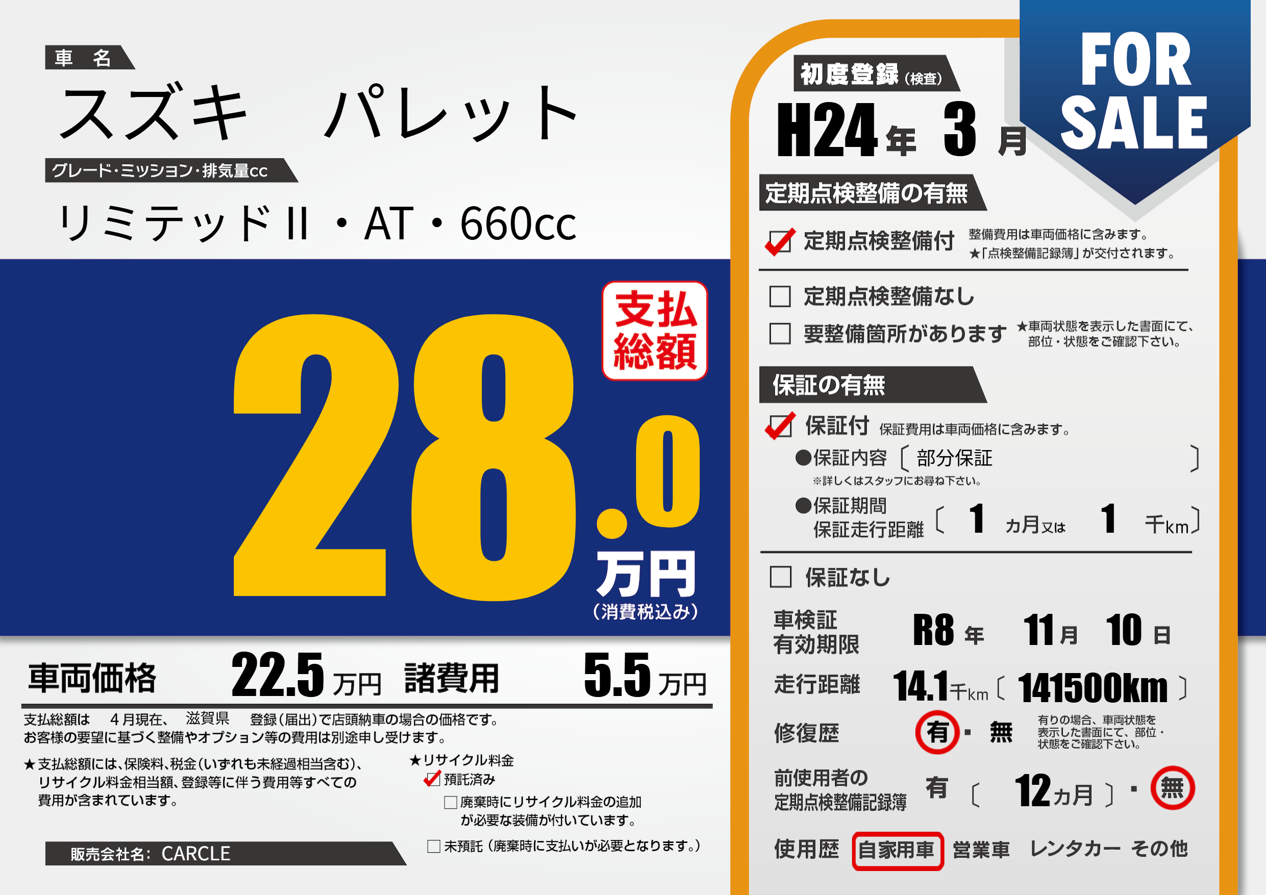 | 車検制限 | R8年 11月 10日 | ||