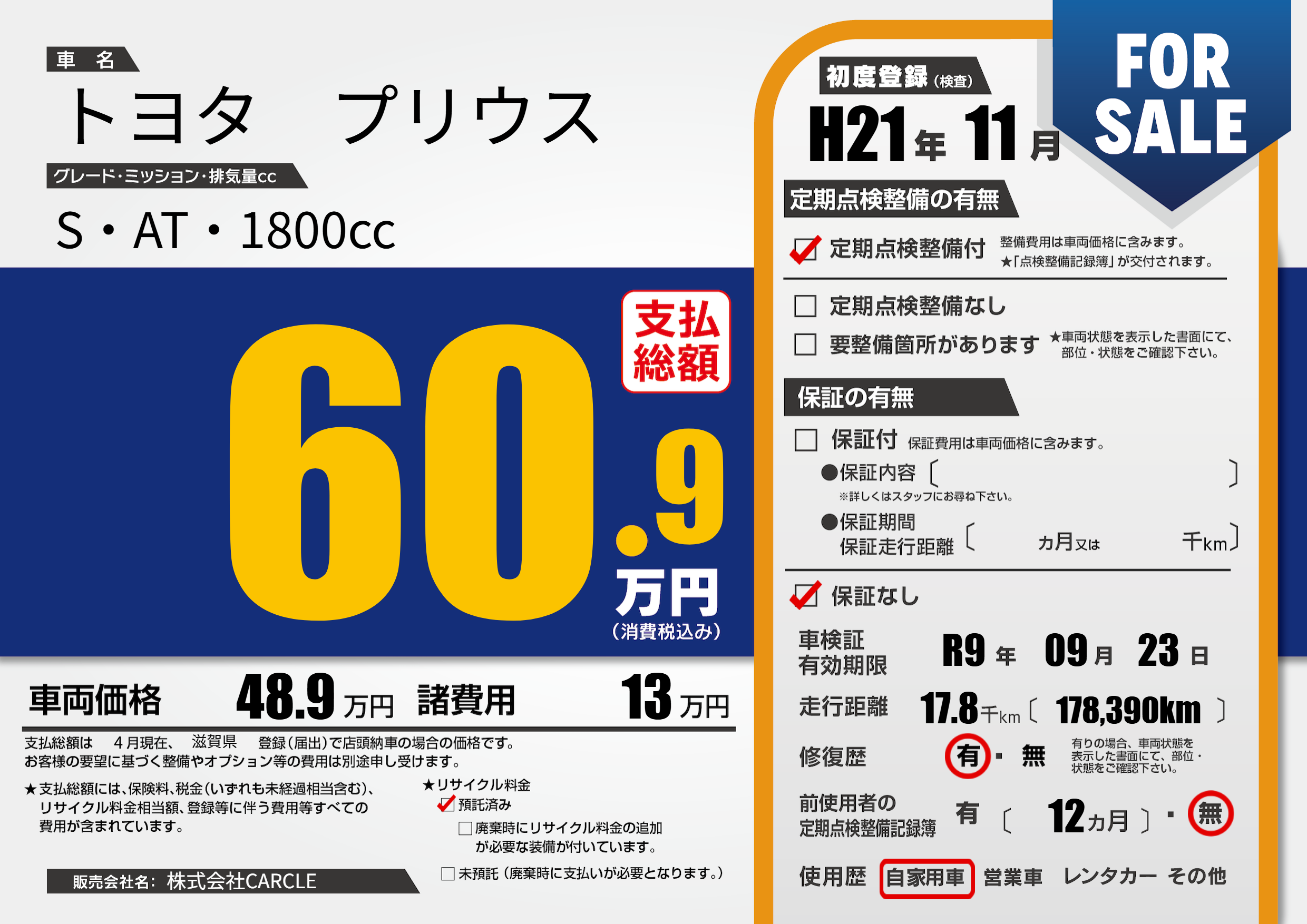 なし | 車検制限 | R9年09月23月 |