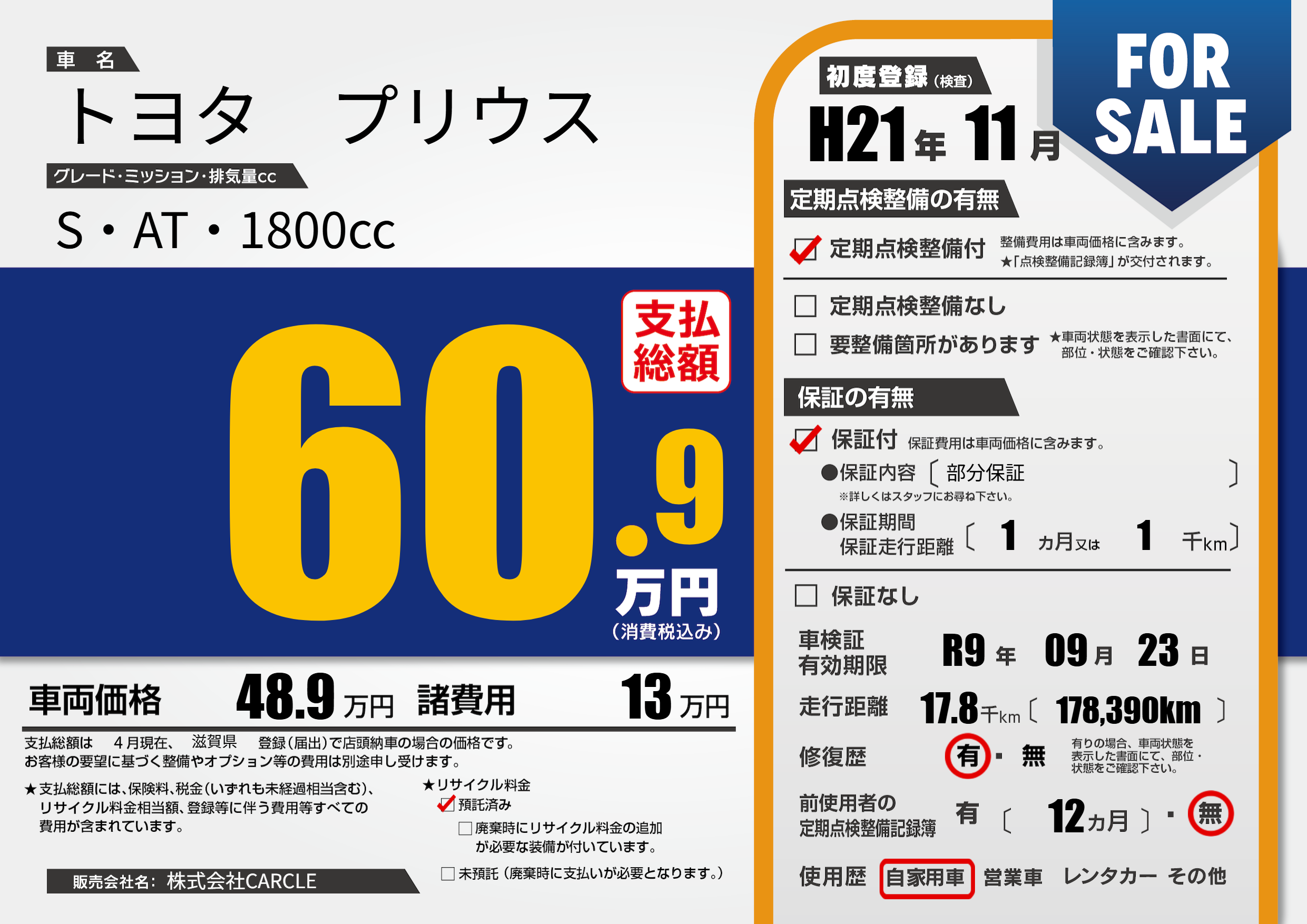 | 車検制限 | R9年 09月 23日 | ||