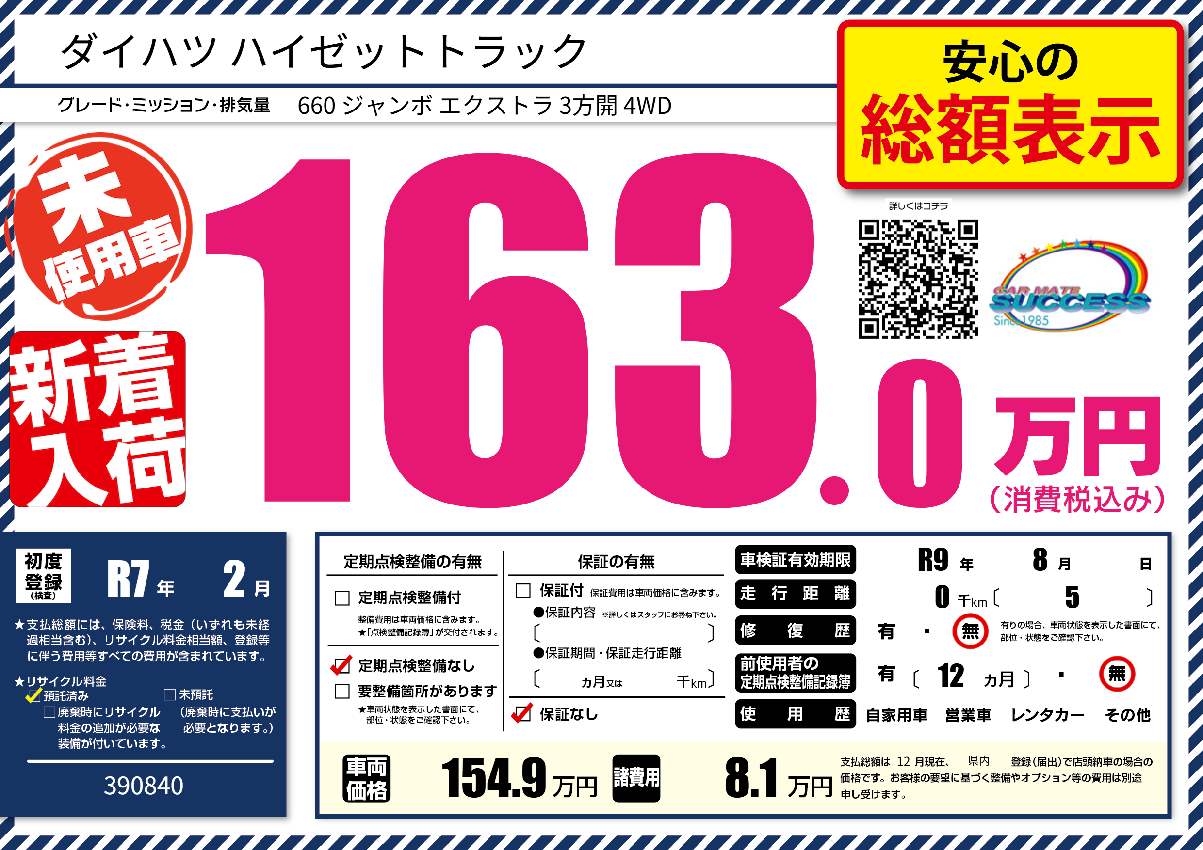 | 走行キロ | - | 初年度登録 | R7年2月 |