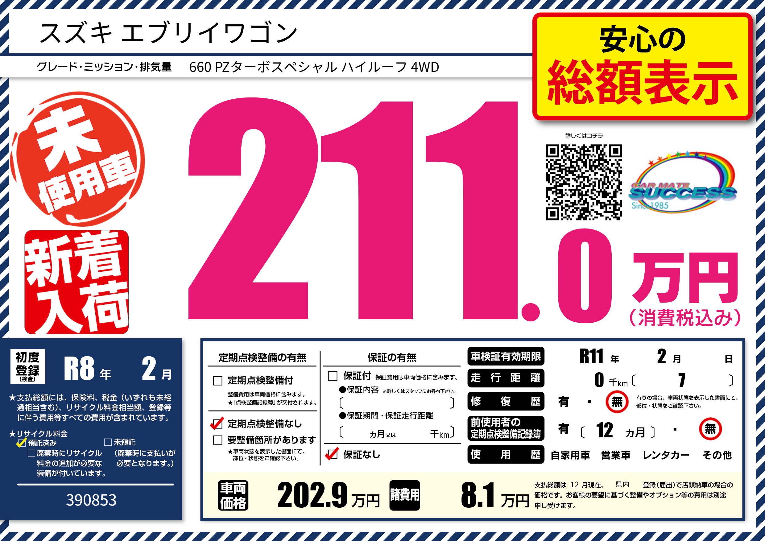 | 車名 | スズキ エブリイワゴン | グレード ミッション 排気量 |