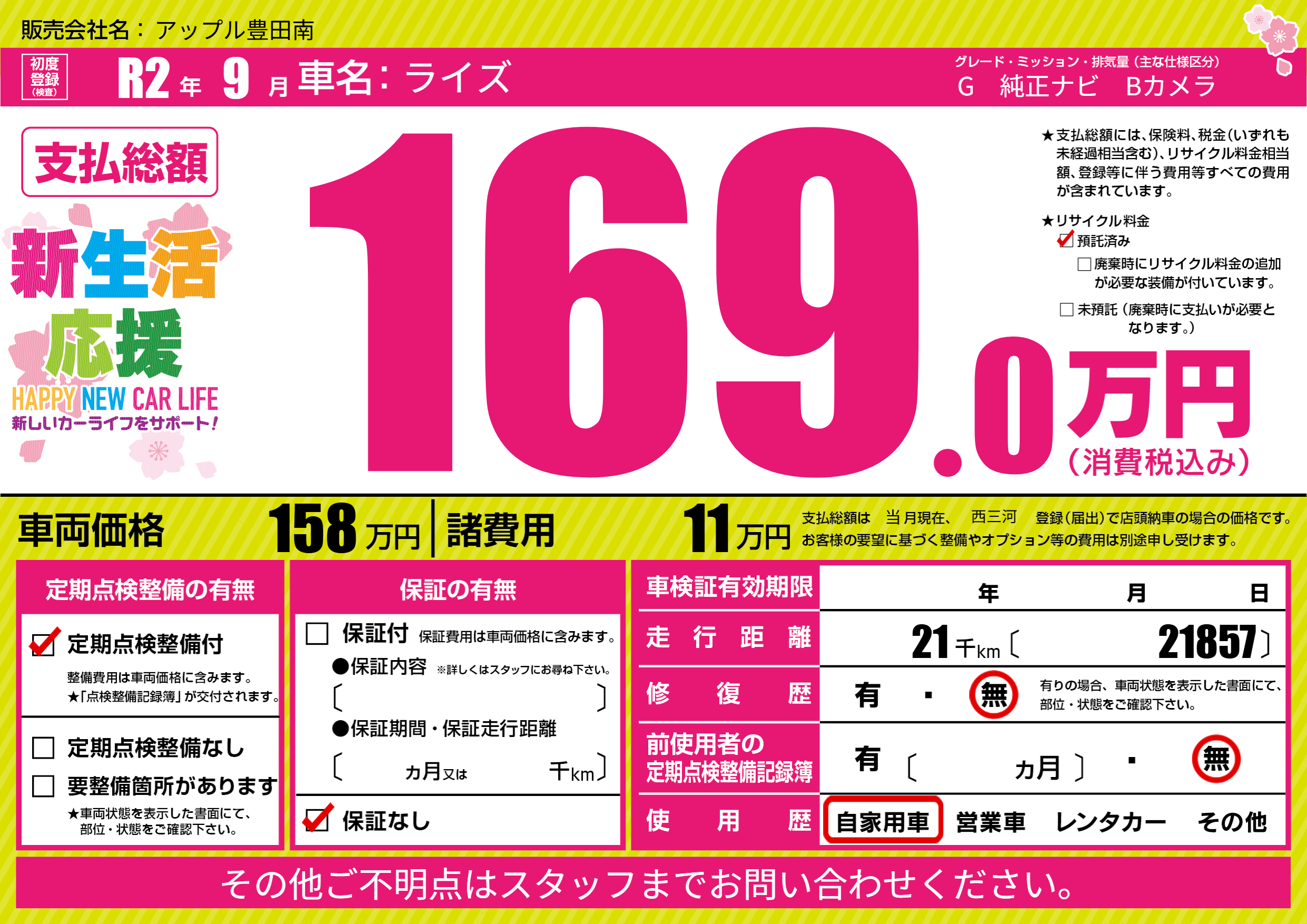 | 定期点検整備 | 定期点検整備あり | ||