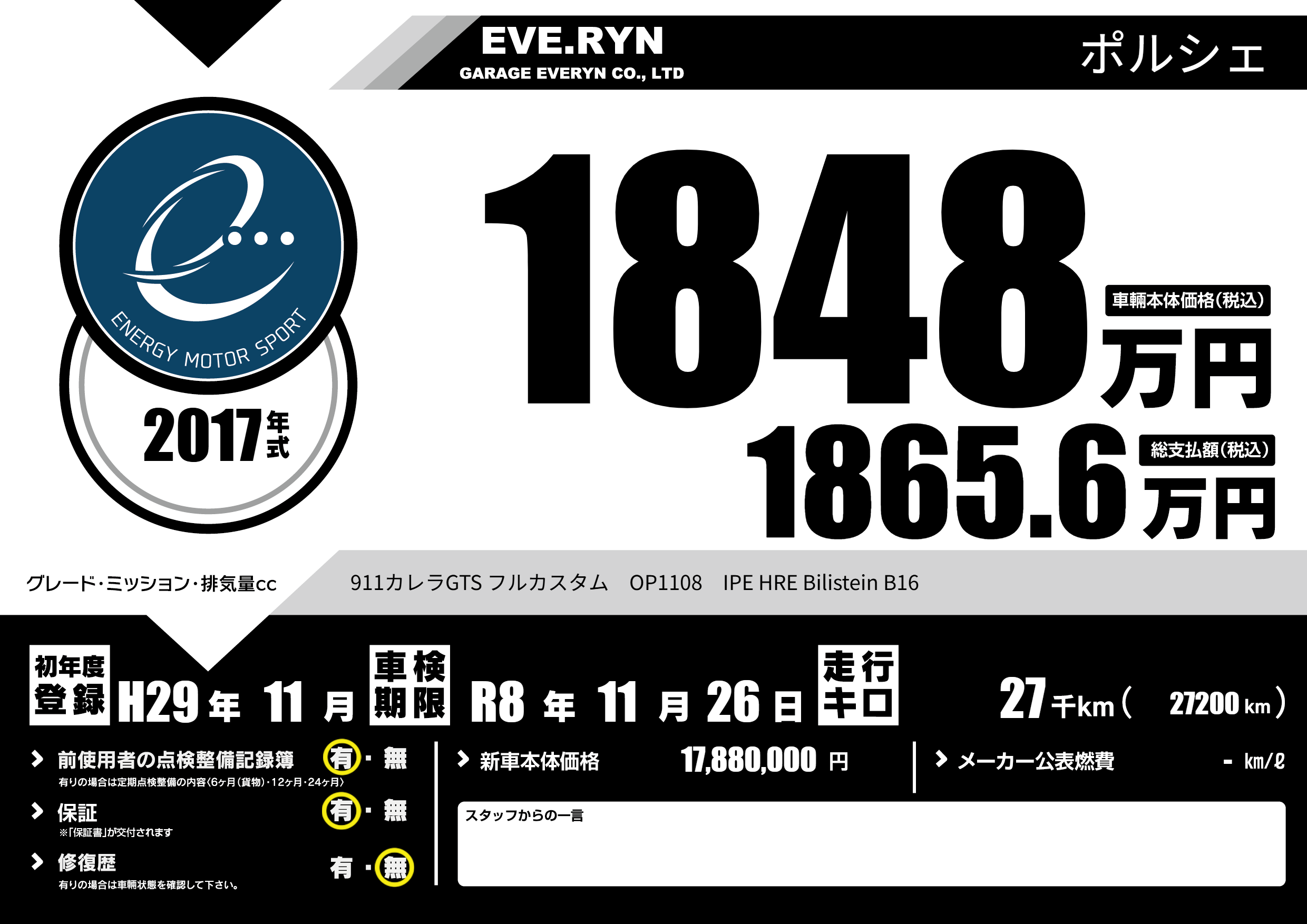 初年度登録 H29年11月