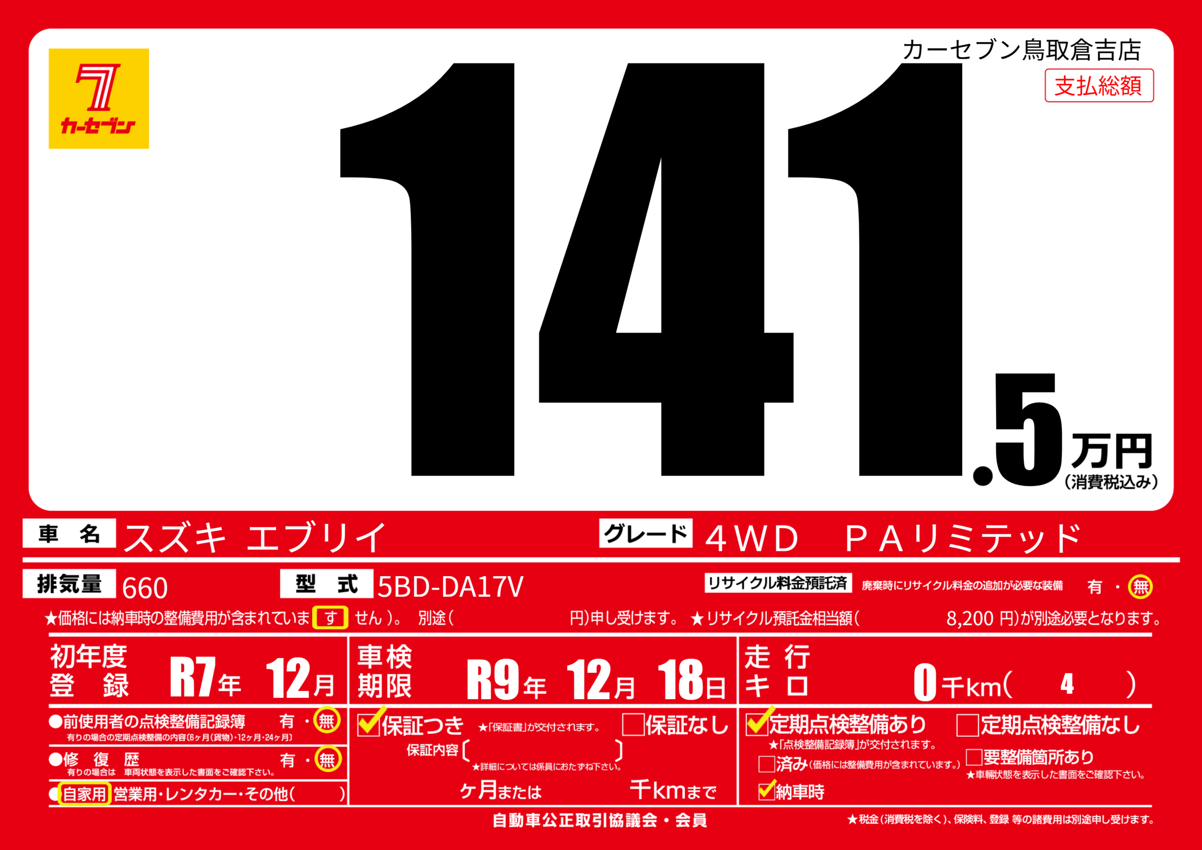 | 初年度登録 | R7年12月 | ||