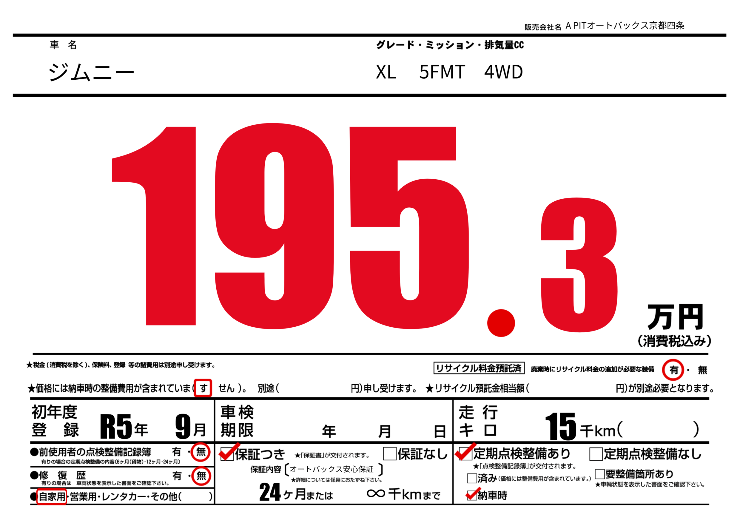 保証なし 保証内容(オートバックス安心保証) 24ヶ月または(∞)千kmまで |