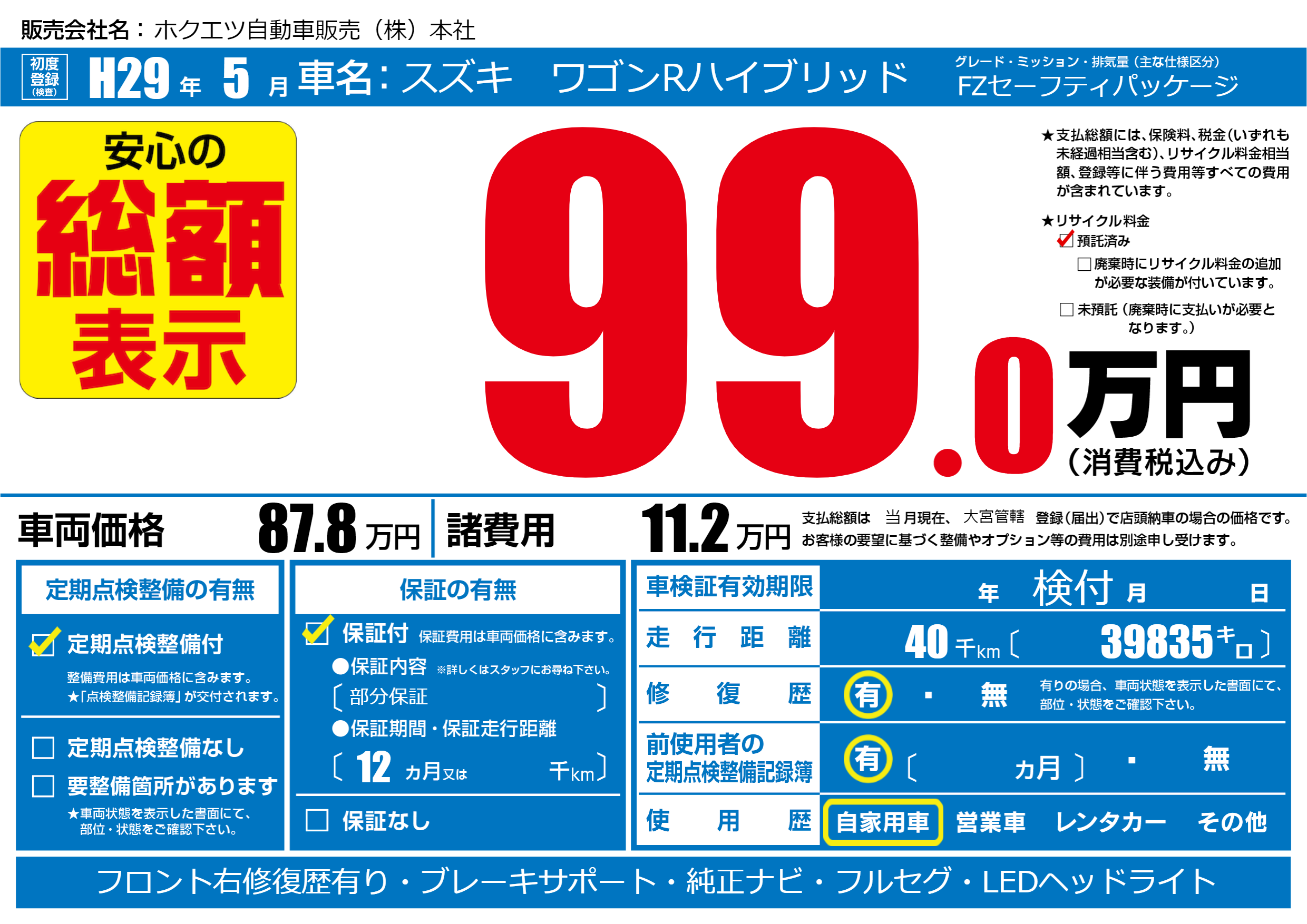 | 定期点検整備 | 定期点検整備あり | ||