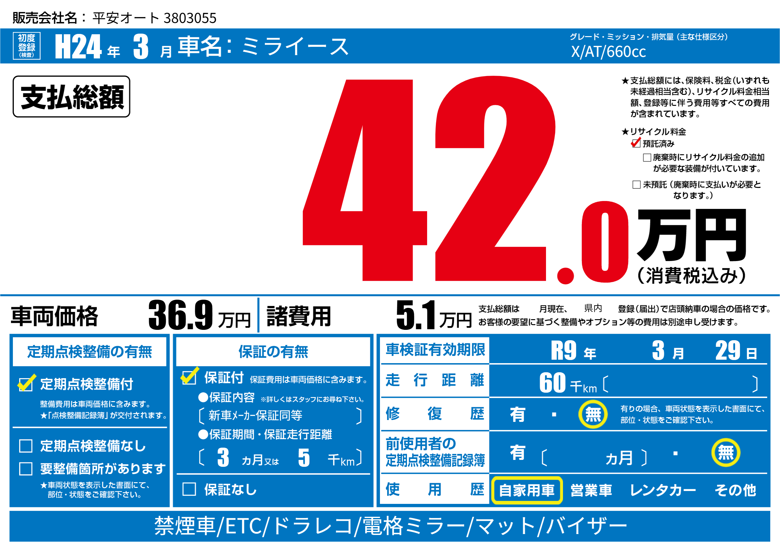なし | 車検制限 | R9年3月29月 |