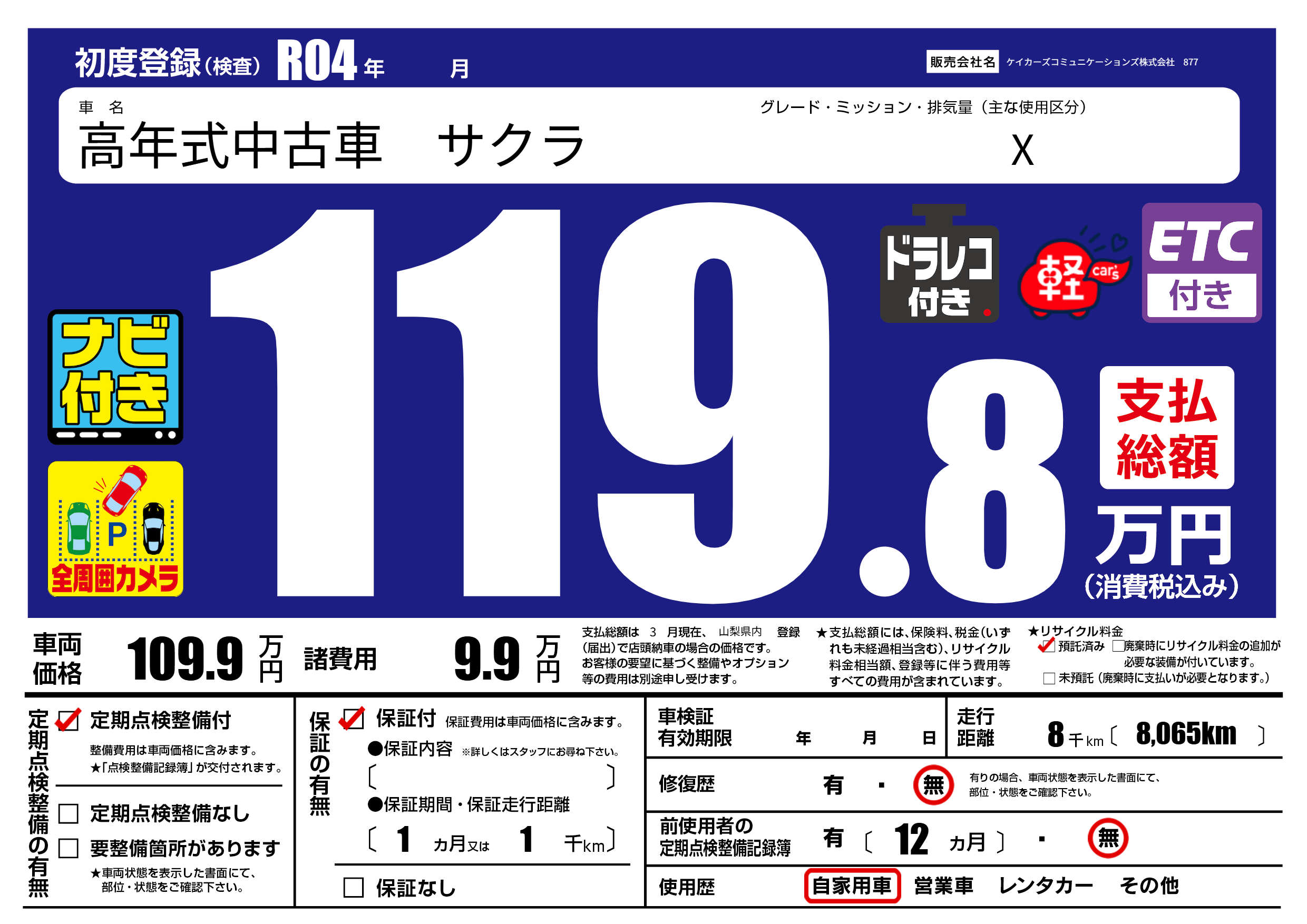 ケイカーズコミュニケーションズ株式会社 フラット7甲府昭和インターの展示車をすべて見る