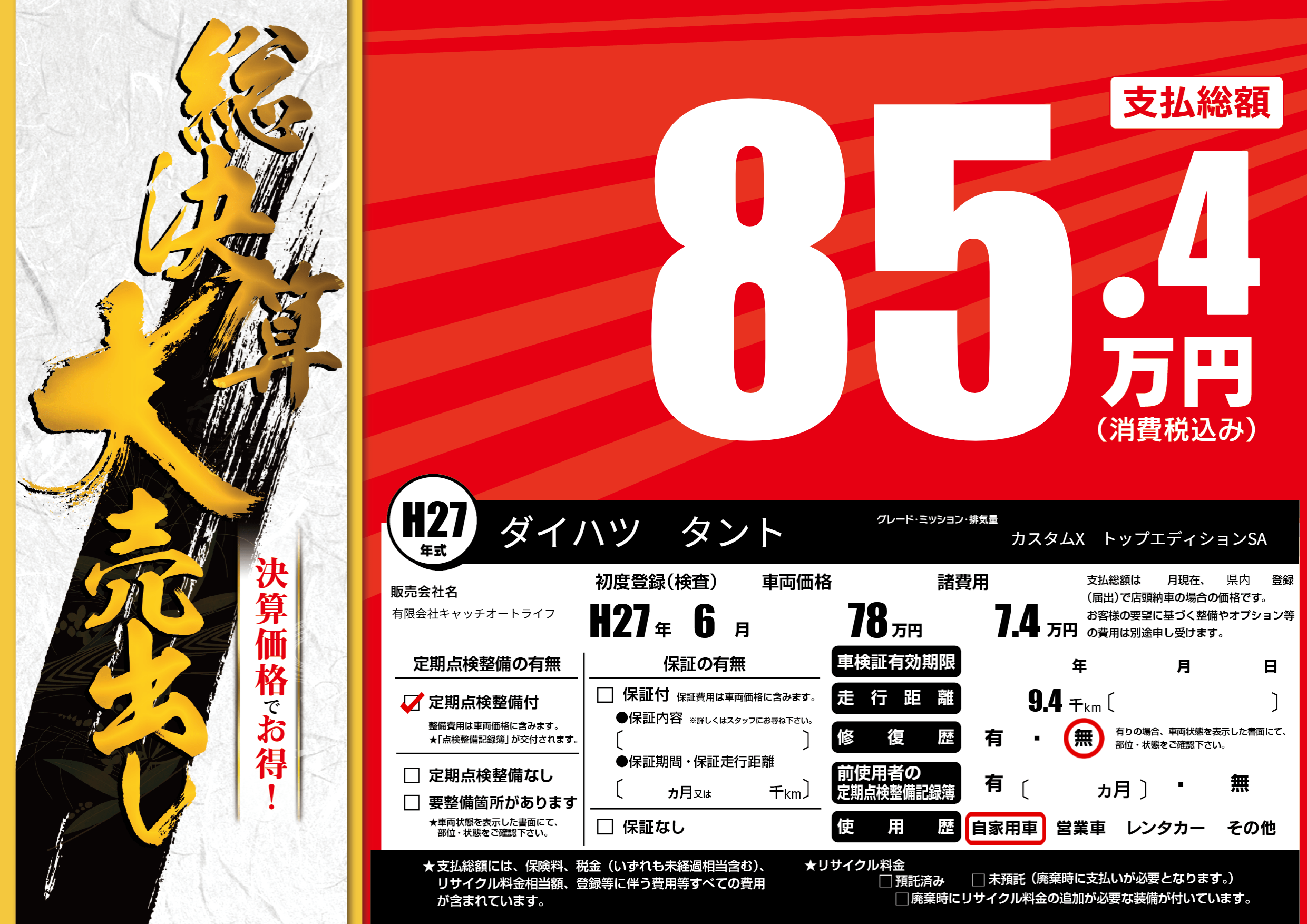 | 定期点検整備 | 定期点検整備あり | ||