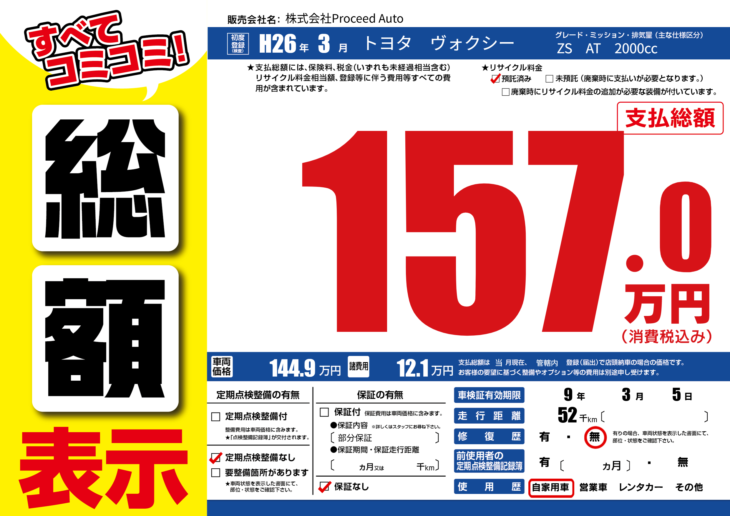 なし | 車検制限 | 9年3月5月 |