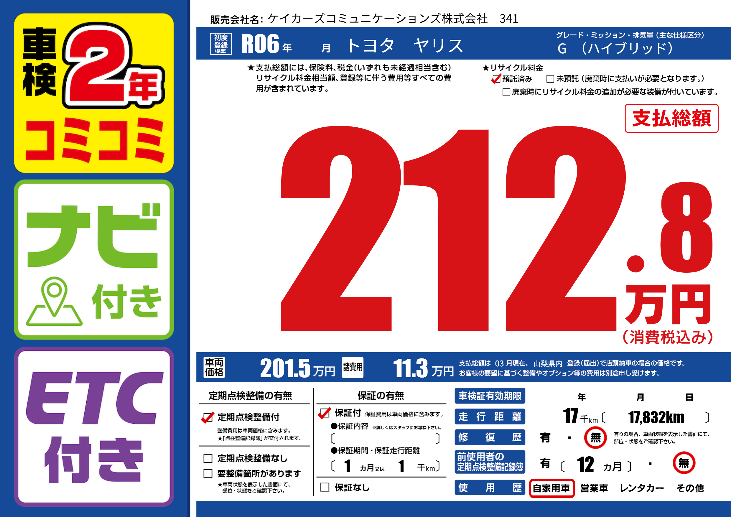 | 車検制限 | - 年 - 月 - 日 | ||