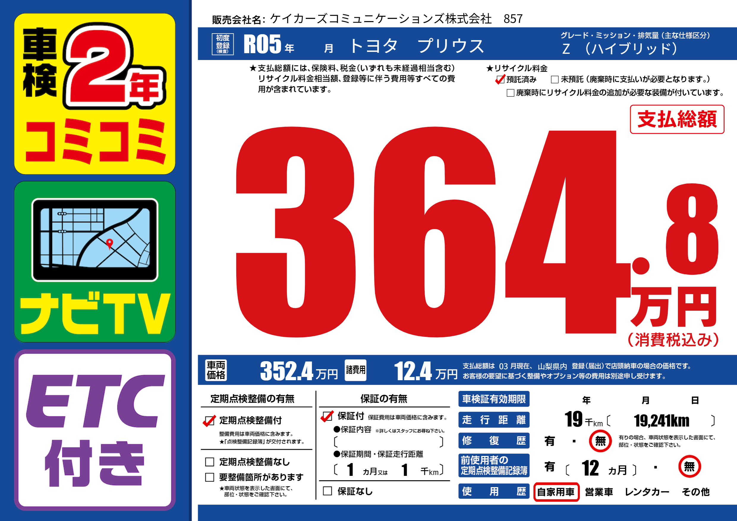 | 定期点検整備 | 定期点検整備あり | ||