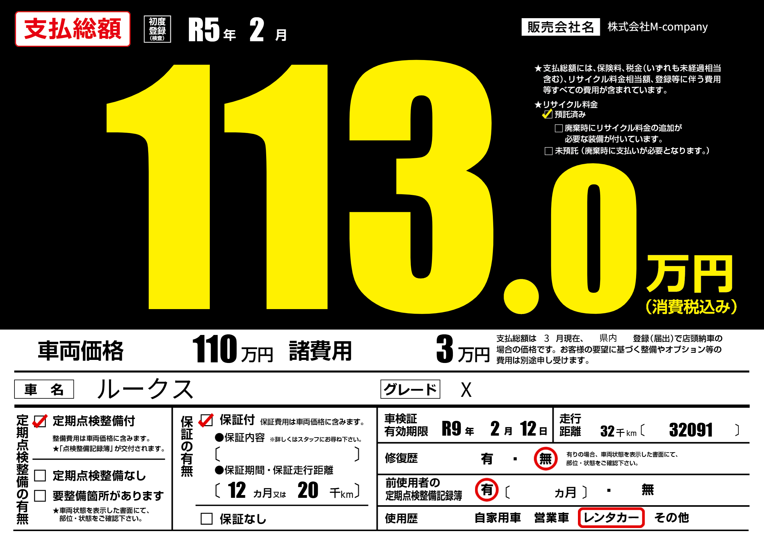 | 走行キロ | 3.2万km | 初年度登録 | R5年2月 |