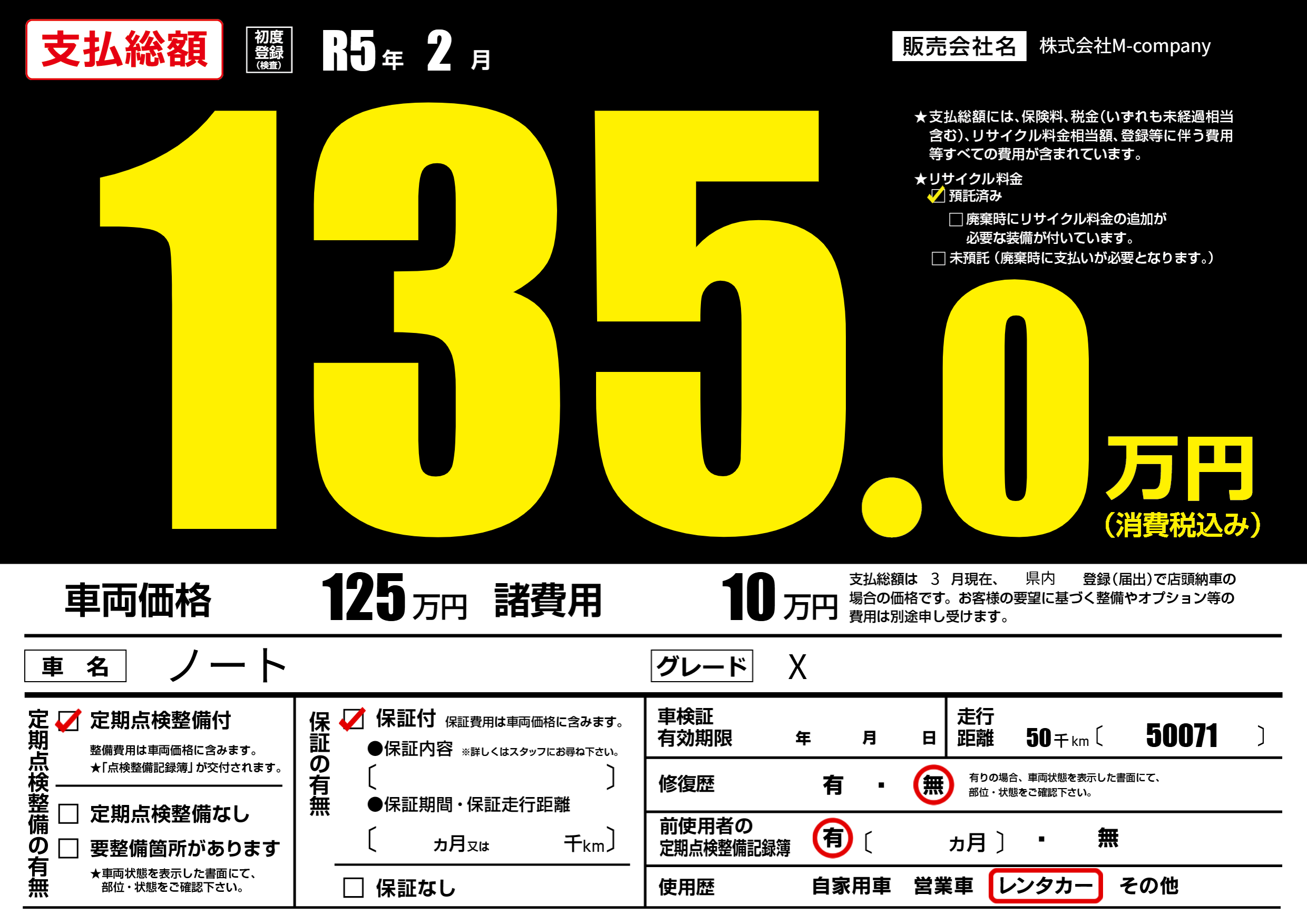 | 走行キロ | 5万km | 初年度登録 | R5年2月 |