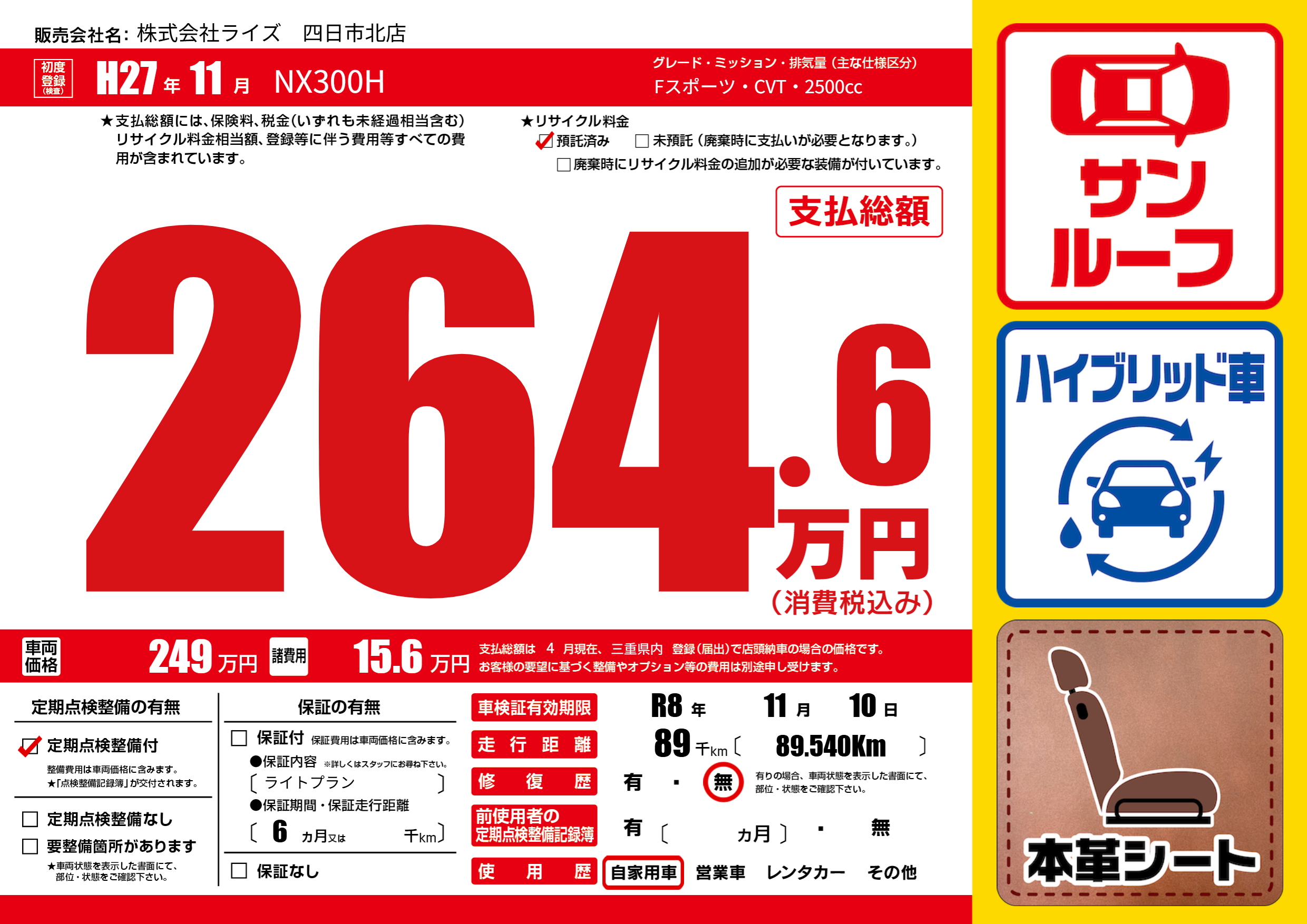 | 車検制限 | R8年 11月 10日 | ||