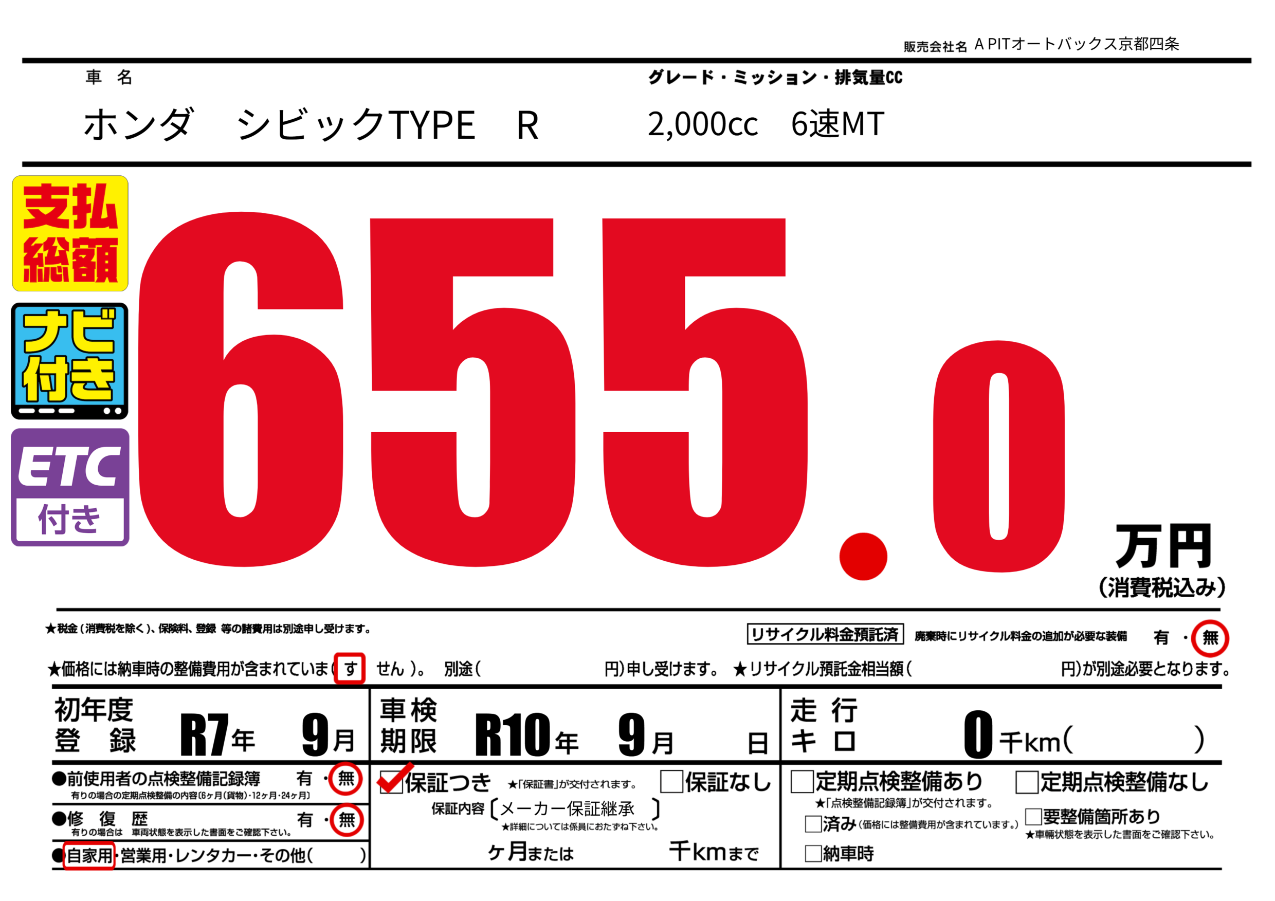 | 車名 | ホンダ シビックTYPE R | グレード ミッション 排気量 |