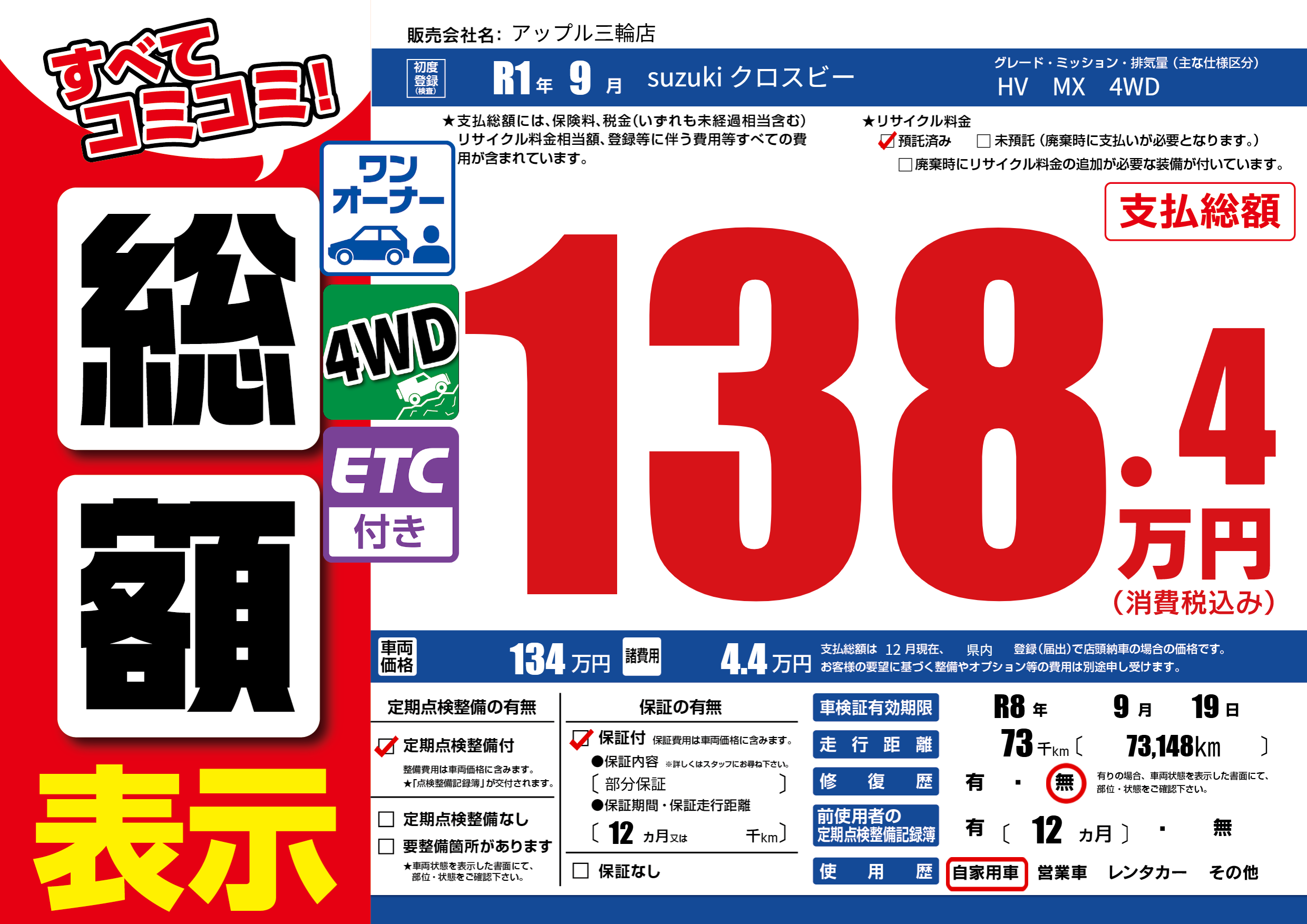 | 車検制限 | R8年 9月 19日 | ||