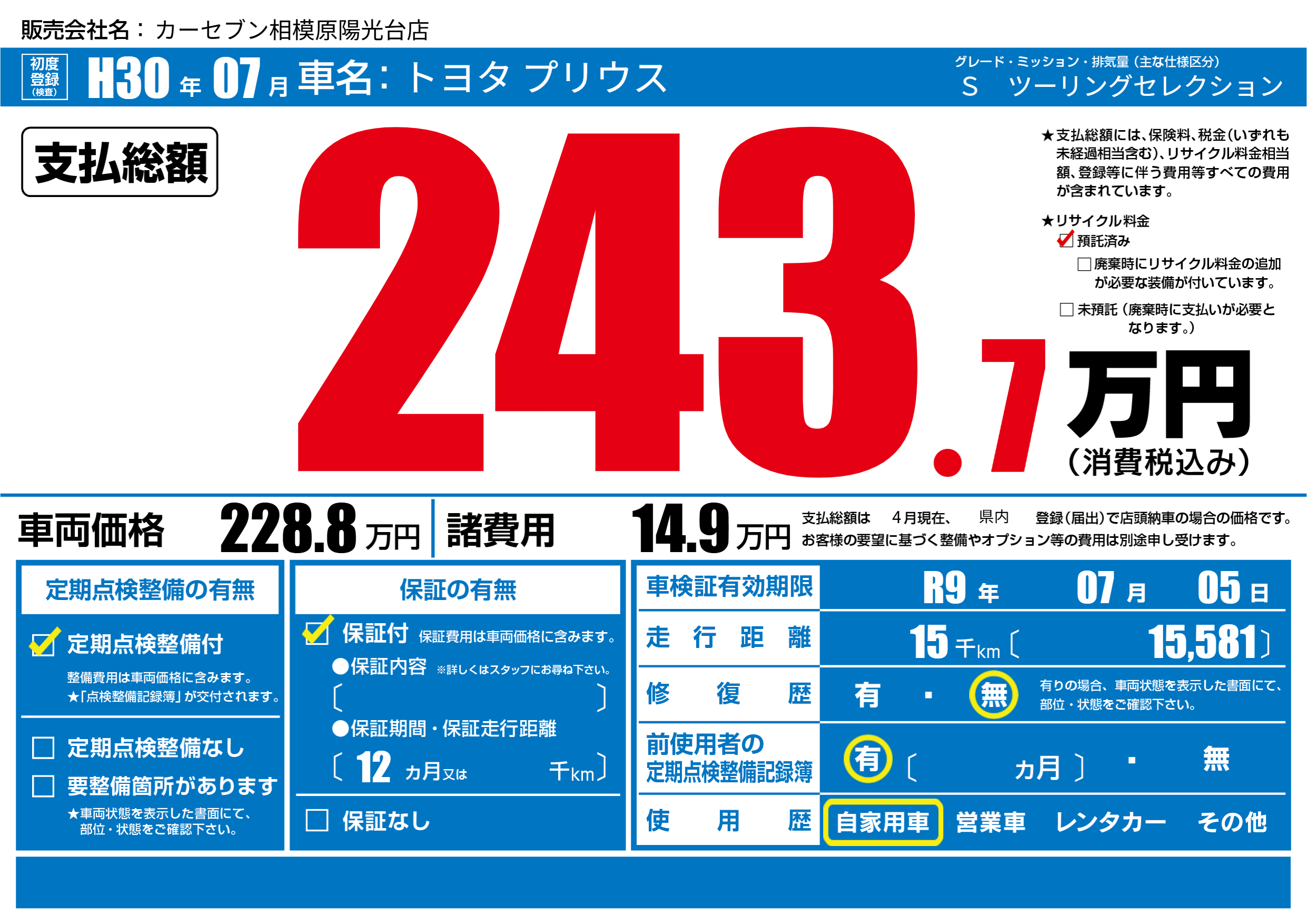 | リサイクル料金 預託済 |