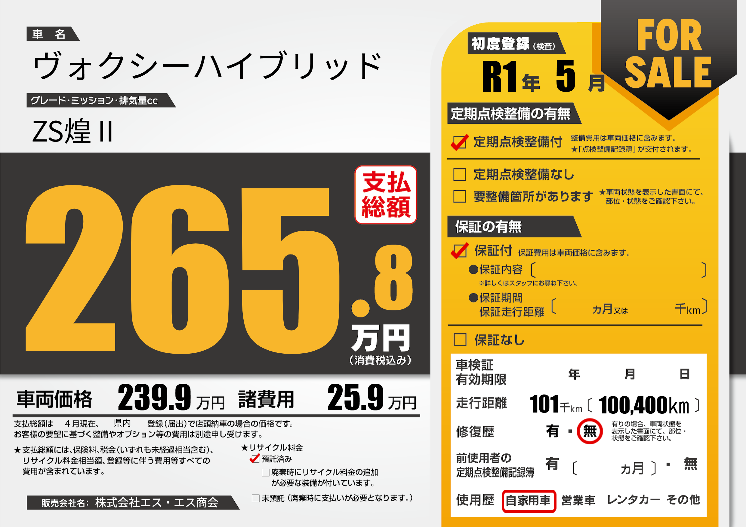 | 定期点検整備 | 定期点検整備あり | ||