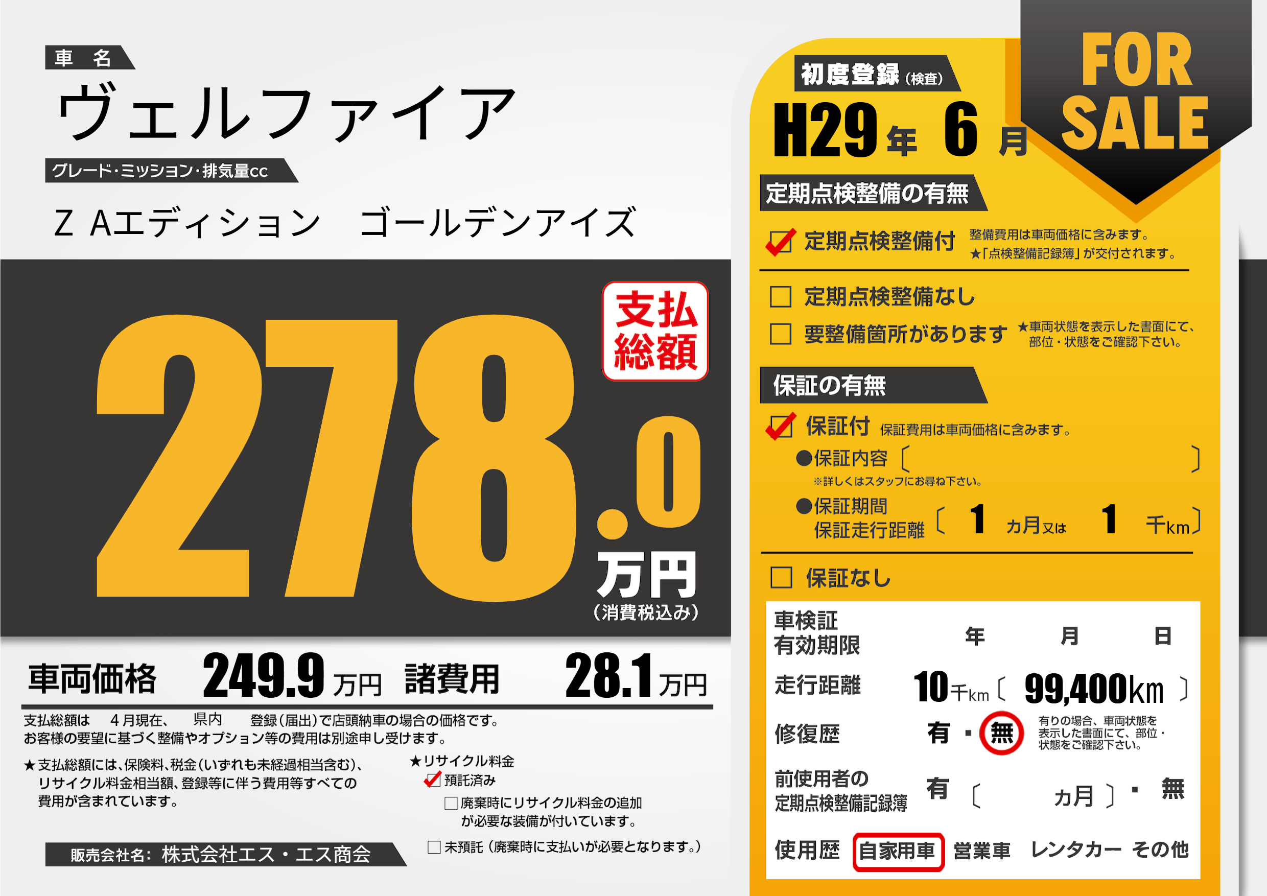 | 車名 | ヴェルファイア | グレード ミッション 排気量 |