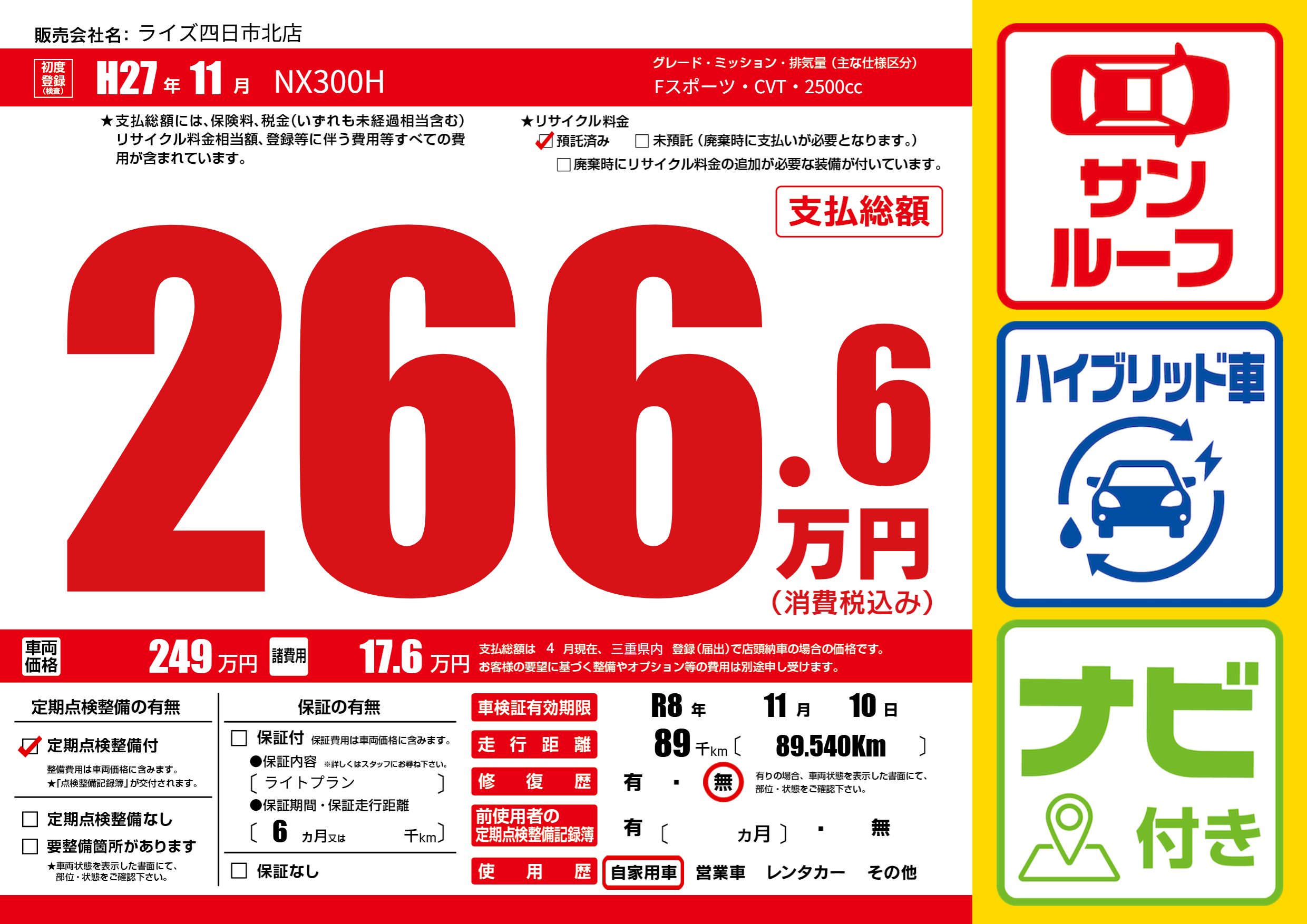 なし | 車検制限 | R8年11月10月 |
