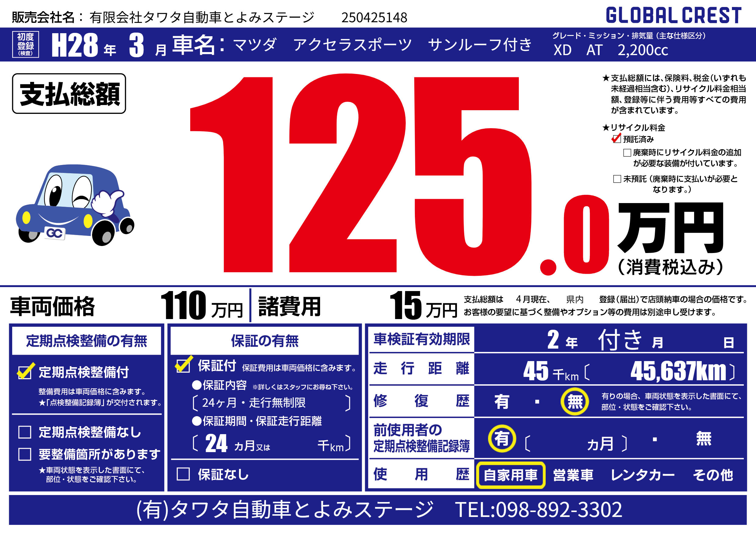 | 走行キロ | 4.5万km | ||