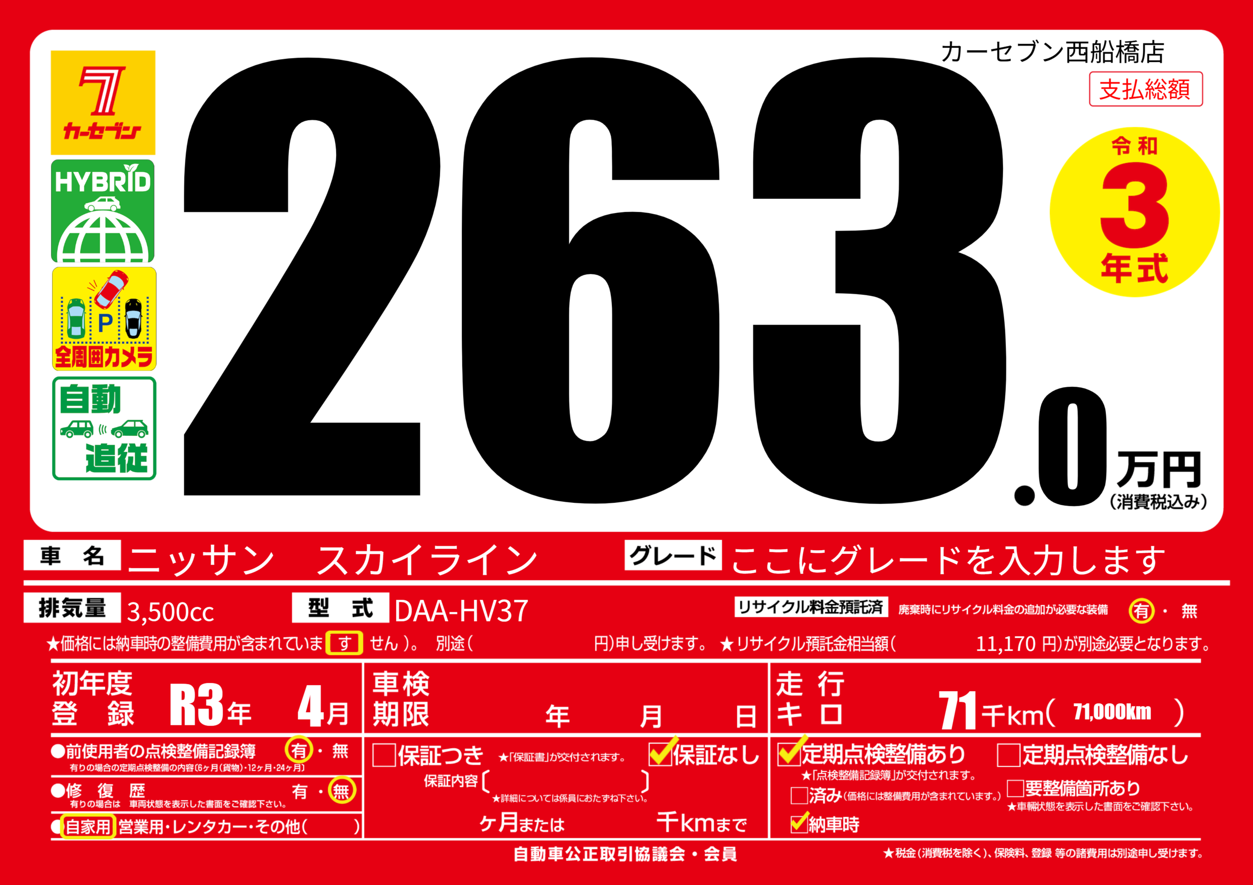 | 走行キロ | 7.1万km | 初年度登録 | R3年4月 |