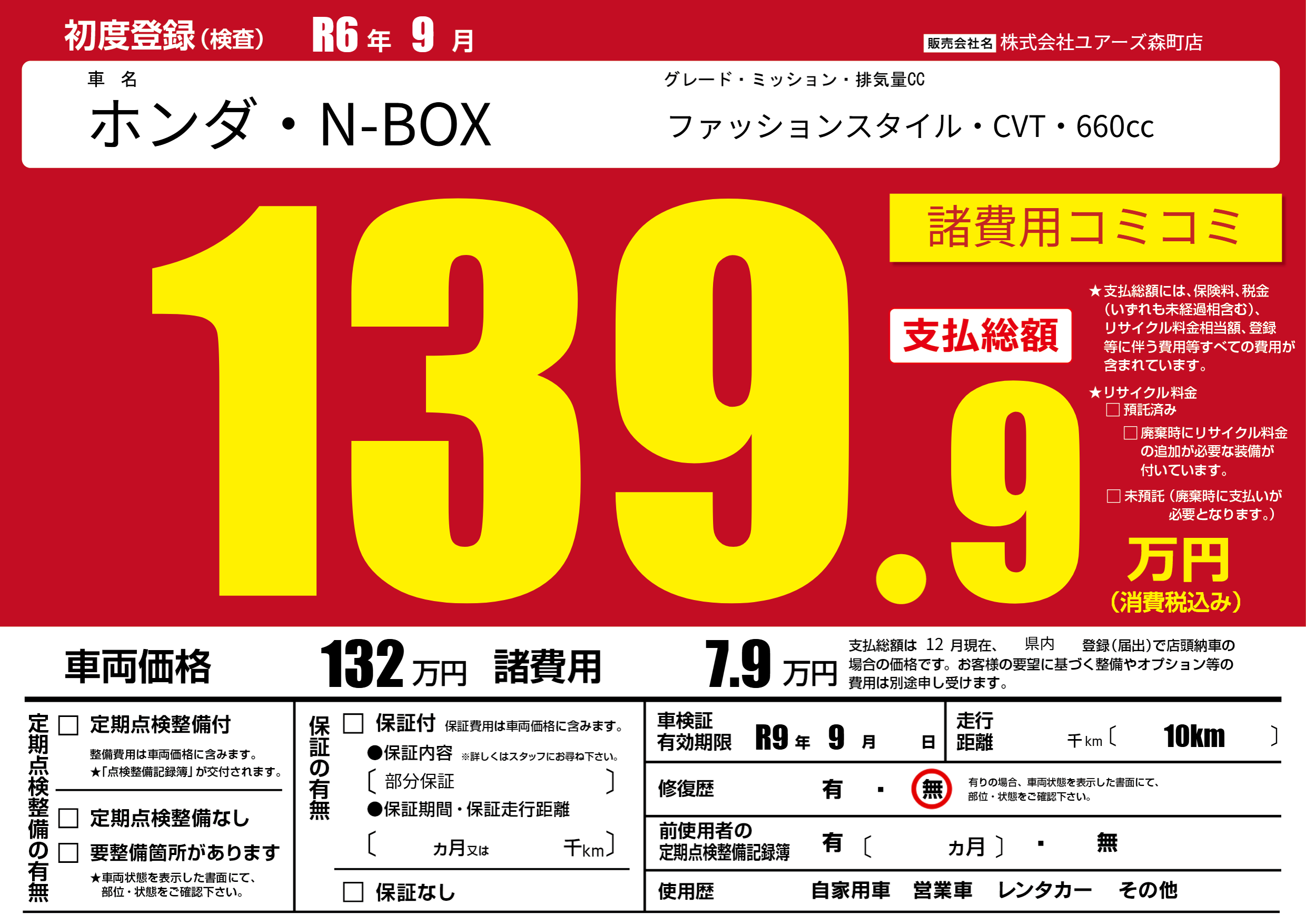 なし | 車検制限 | R9年9月---月 |