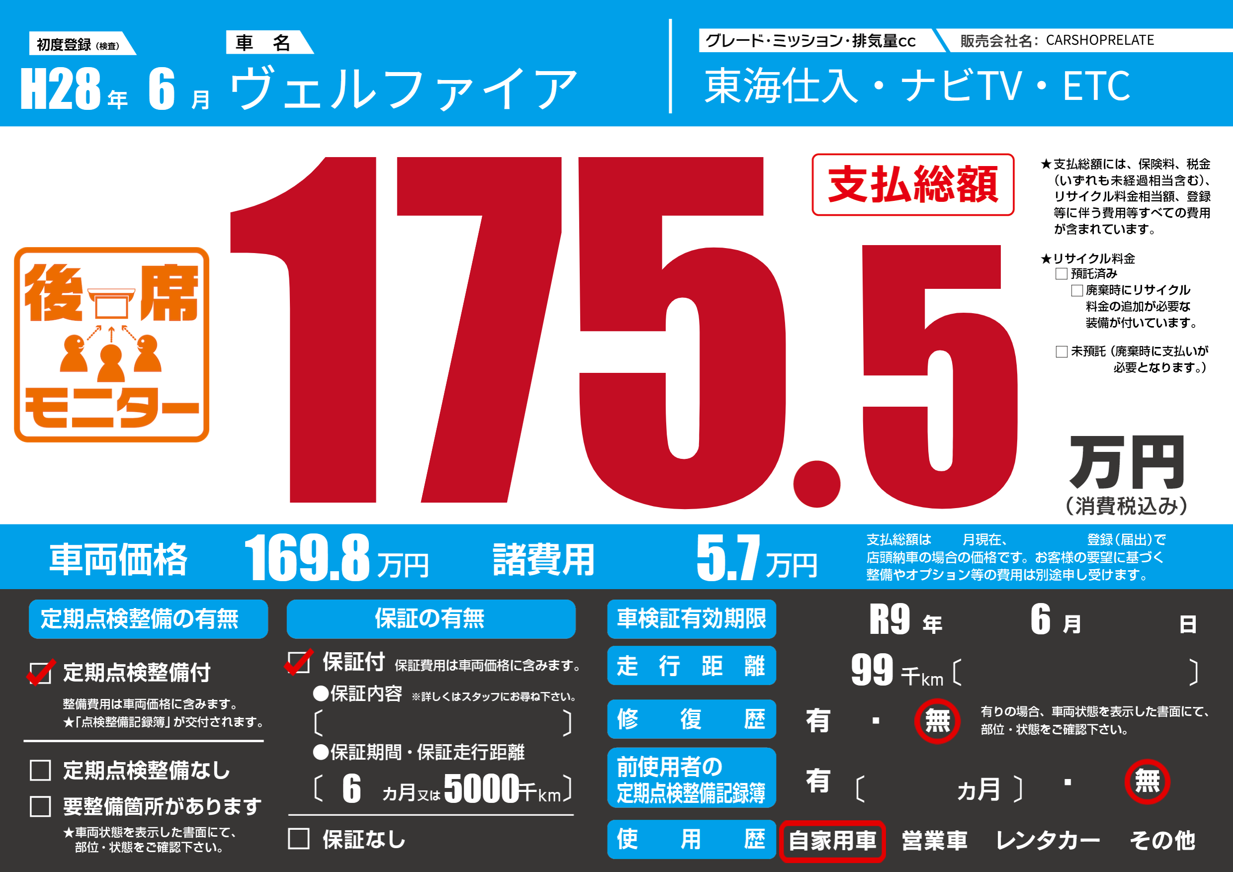 | 車名 | ヴェルファイア | グレード ミッション 排気量 |