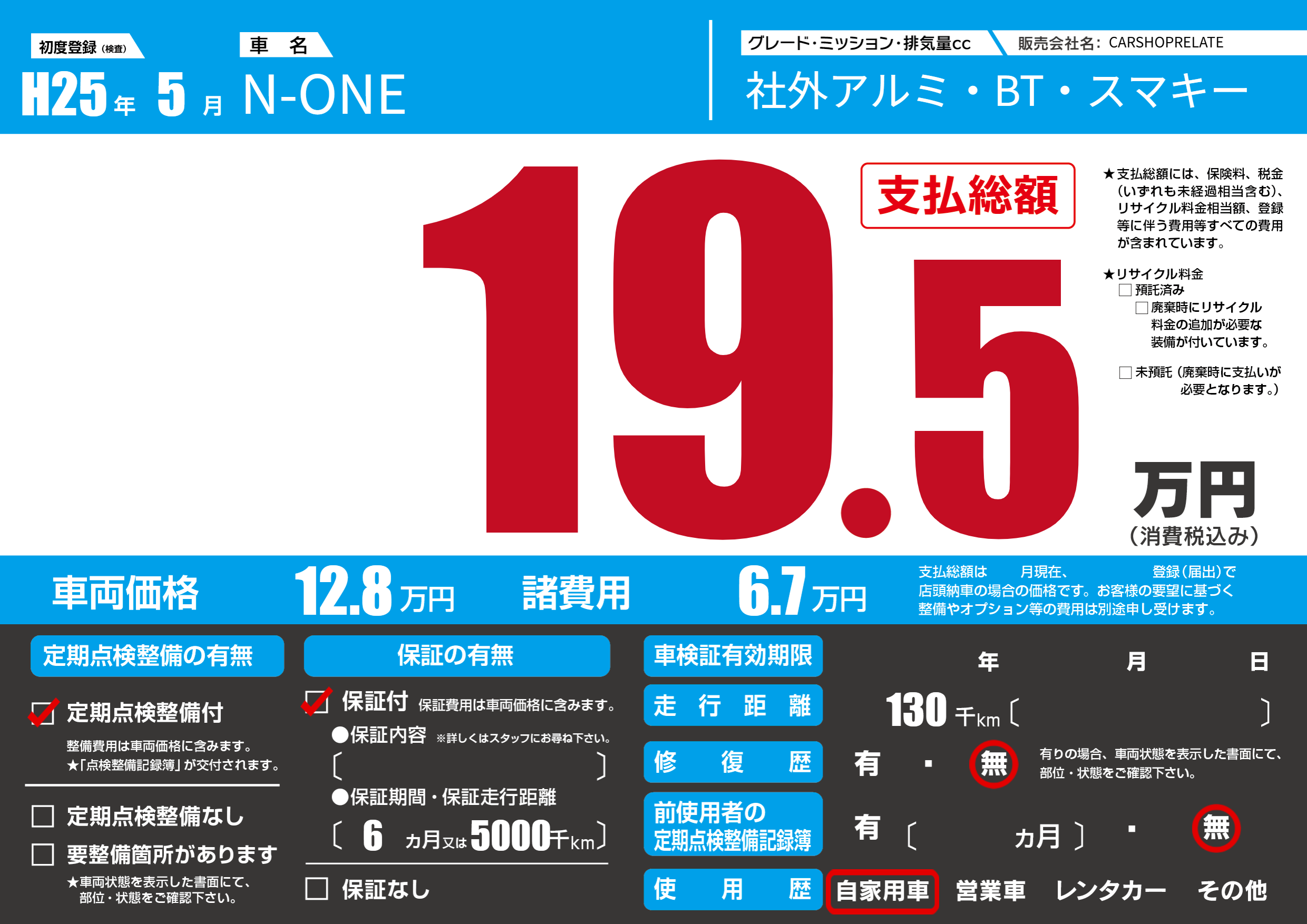 | 定期点検整備 | 定期点検整備あり | ||
