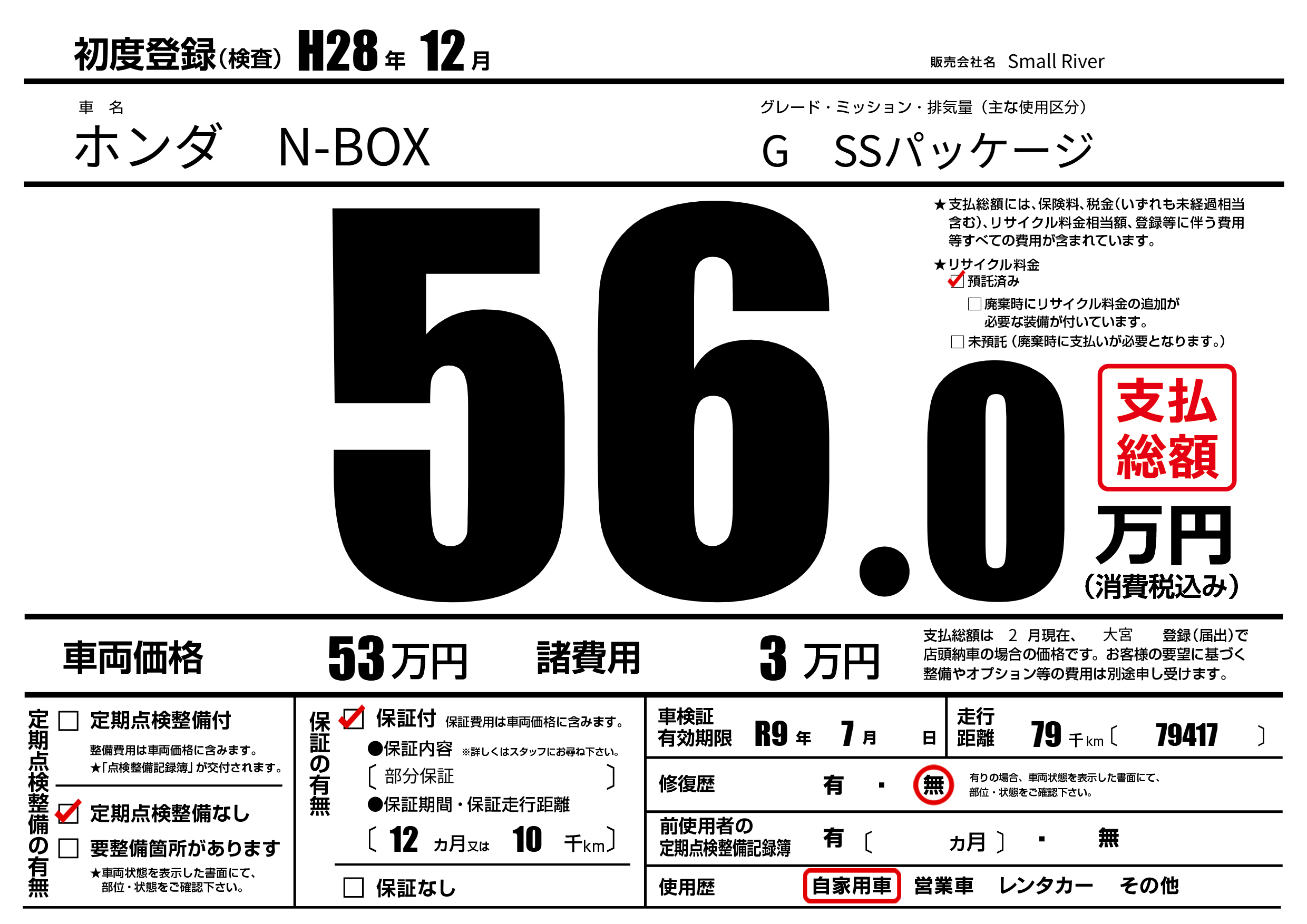 | 走行キロ | 7.9万km | 初年度登録 | H28年12月 |