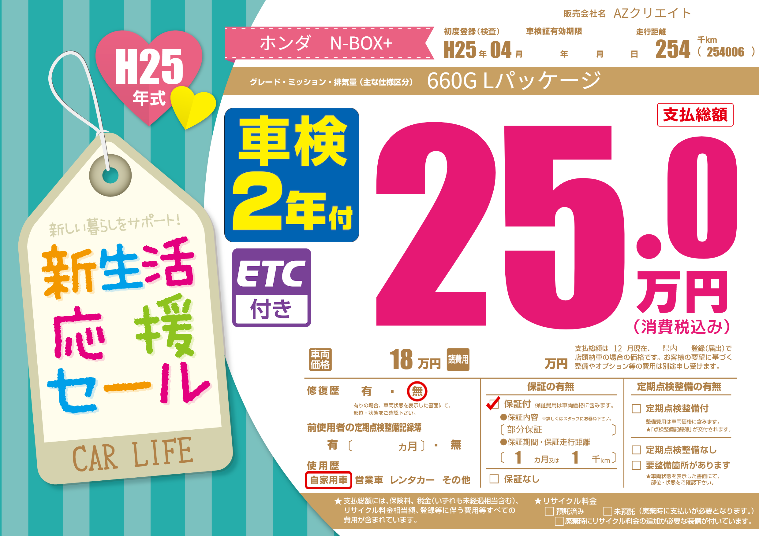 | 走行キロ | 25.4万km | ||