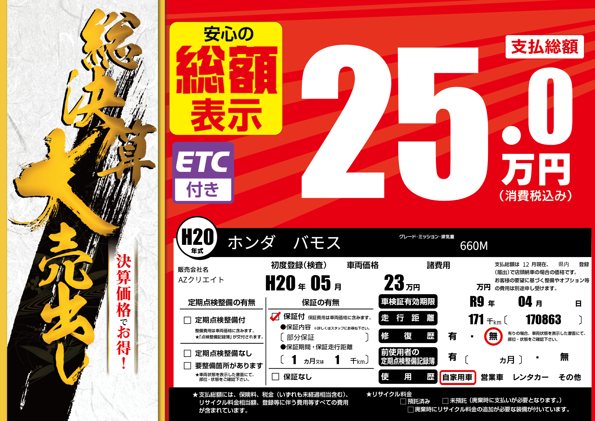 なし | 車検制限 | R9年04月---月 |