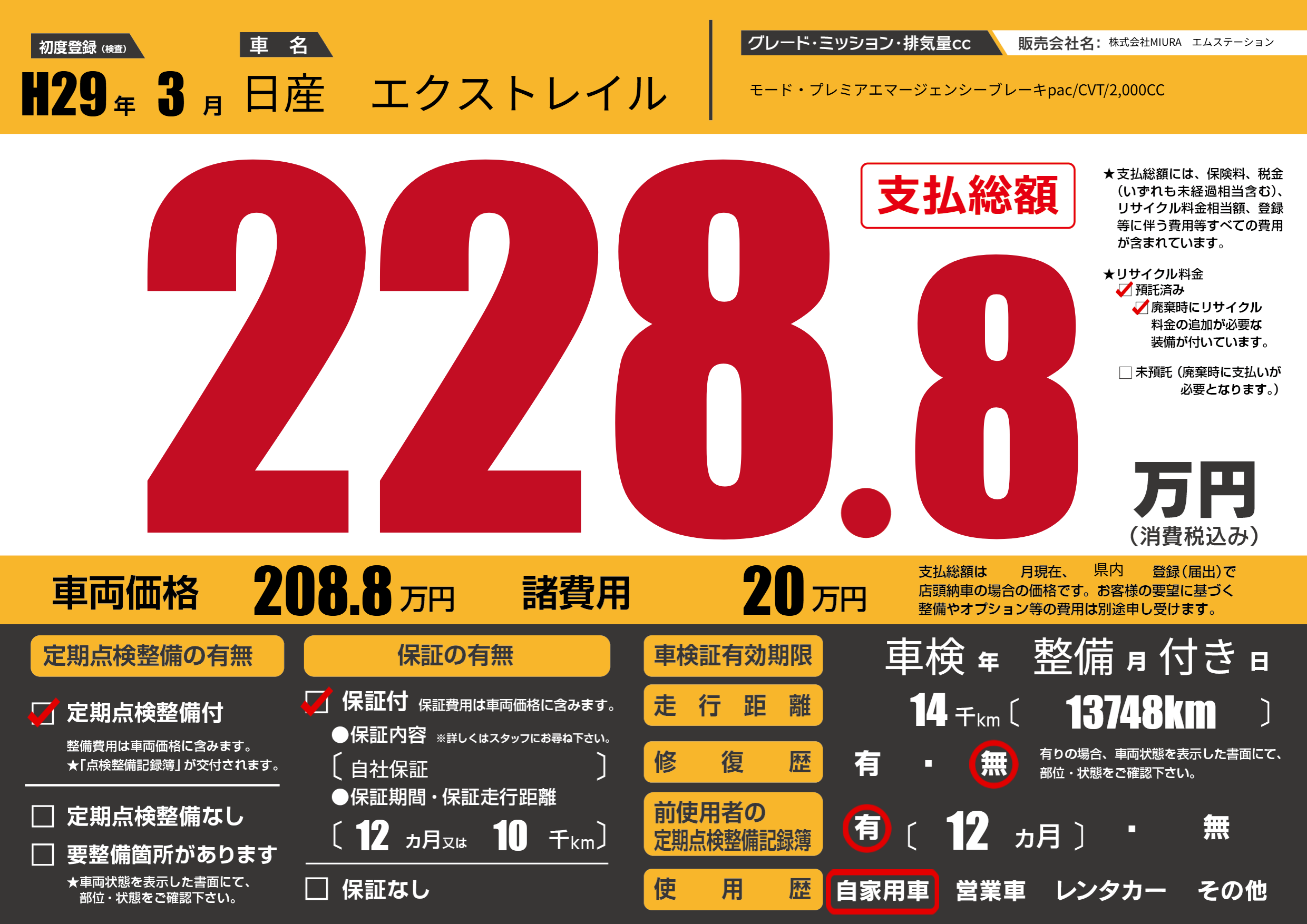 | 車名 | 日産 エクストレイル | グレード ミッション 排気量 |