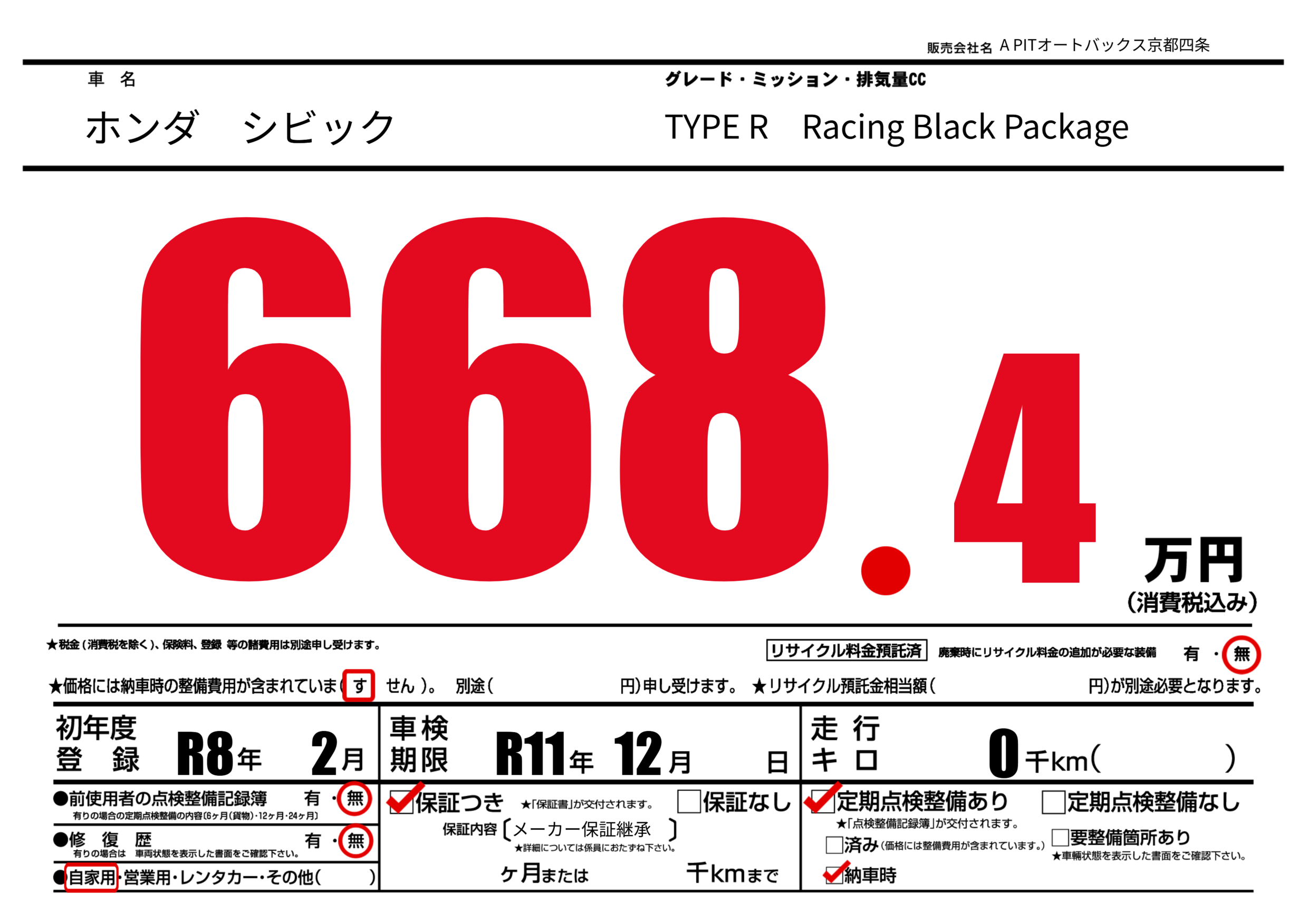 | 走行キロ | - | 初年度登録 | R8年2月 |